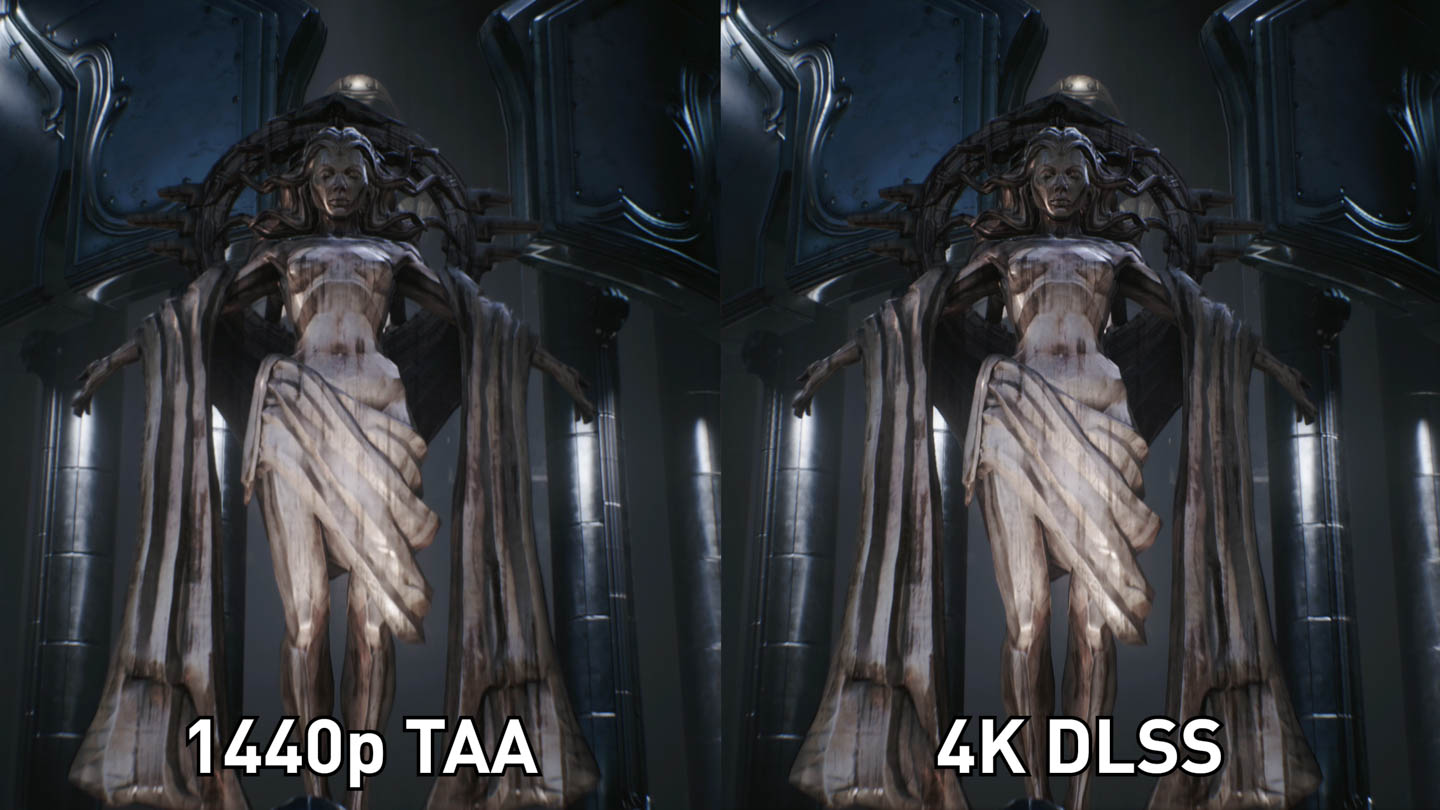 There is one very nice thing to highlight: 4K DLSS is far superior to a native 1440p presentation. As you might recall, DLSS is upscaling from 1440p to try and imitate 4K. Well at a native 1440p, textures and fine detail are noticeably blurrier when upscaling that image to 4K ourselves, whereas using DLSS for upscaling is like a magic filter that cleans up everything.