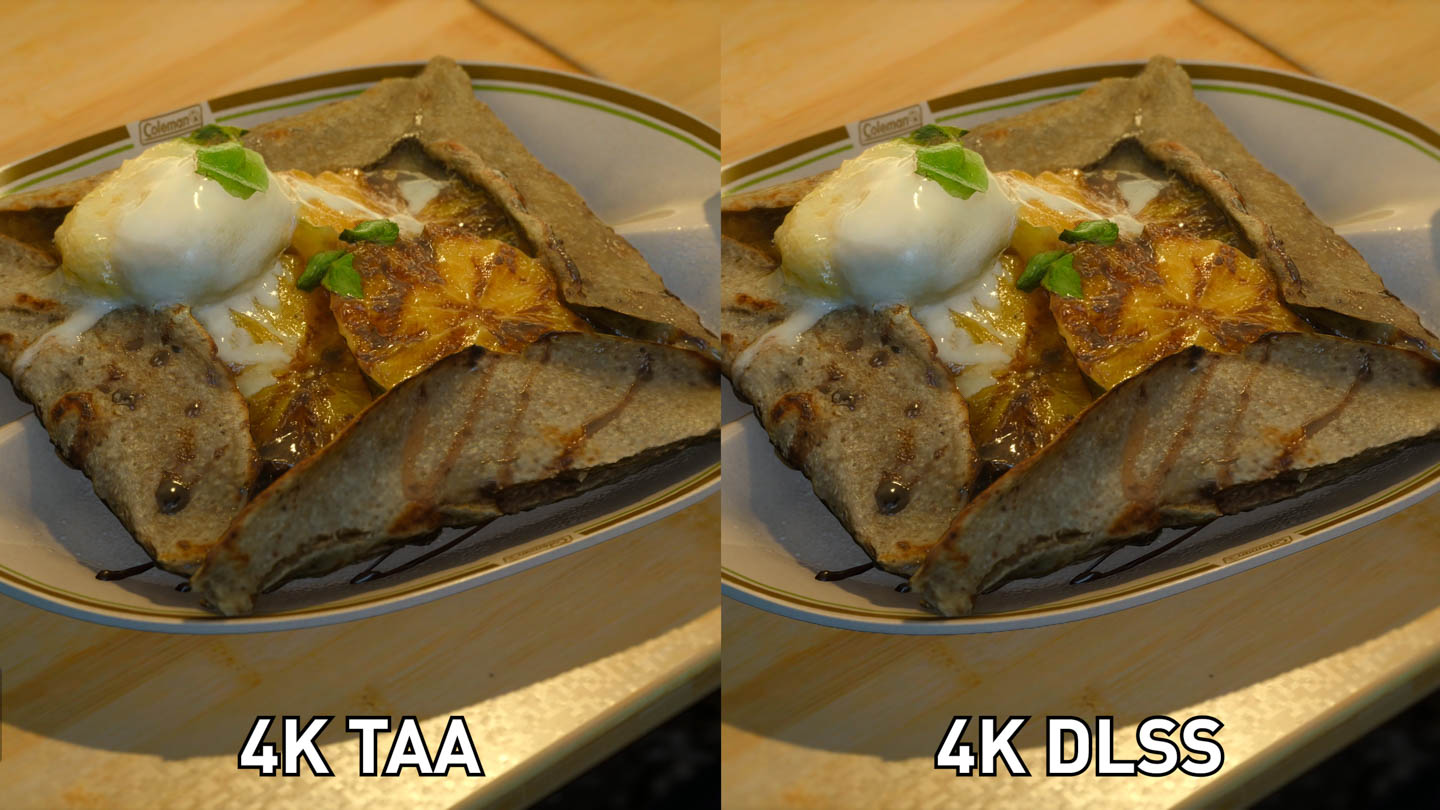 Of course, DLSS vs 4K TAA is the stock standard comparison Nvidia suggests. So I decided to look at a few other comparisons, starting with DLSS vs a 4K image with no anti-aliasing.