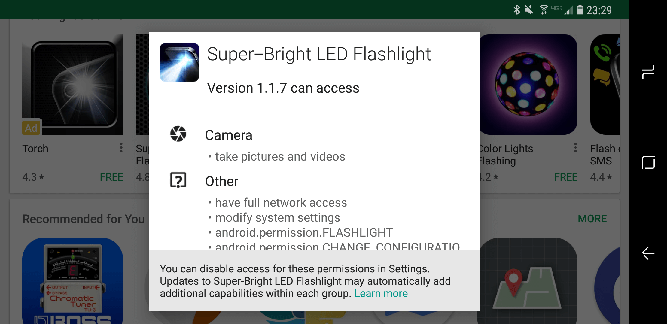 Also, you may have missed that the Play Store gives extra information about app permissions, which may come handy before you even install a certain app.