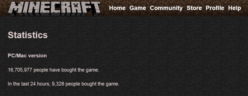 Mojang will sell 13 million units in 2014. This figure is based on PC sales over the last 24 hours as representative for the year (upside: holiday sales; downside: accelerated saturation) and a similar mix of PC to total sales in 2013. This represents a 23% decline versus the 17 million units sold in 2013.