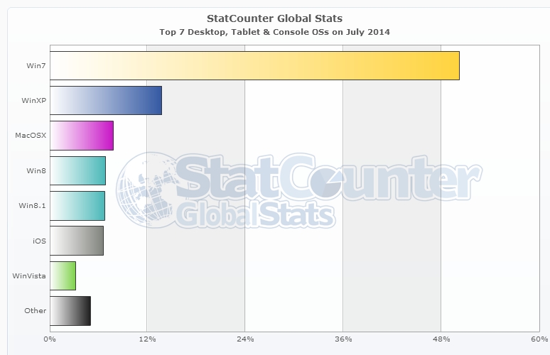 If you look at actual usage, it's even more stark. According to StatCounter, Chromebook web usage was just 0.17% in July 2014. For an always-online device supposedly destroying PCs, that's an incredibly niche number. By comparison, Windows RT – widely declared as dead on arrival – registered 0.10% over the same time period.