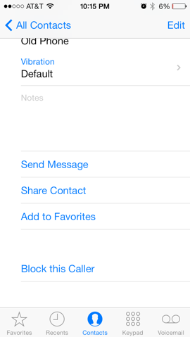 It's about time Apple implemented a way to block unwanted communications. There are two methods to block offending callers in iOS 7. If someone is already in your address book, simply tap on their profile, scroll to the bottom of the list and select Block this Caller. You can also add numbers to the block list by going to Settings > Phone > Blocked.