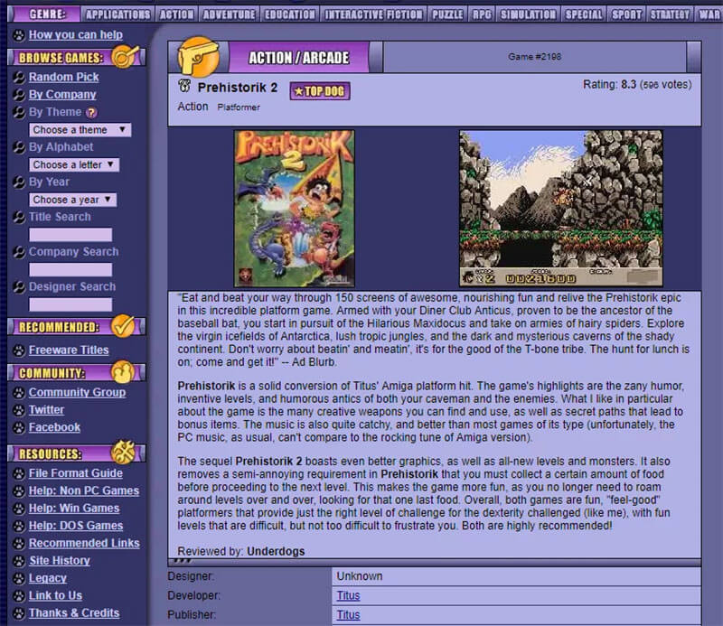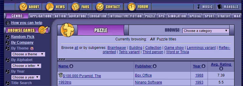 The site launched with descriptions for around 15 to 20 games, including ones that were popular online at the time: The Fool's Errand, Nomad and Sea Rogue. It was enough to get the site going, however, and before long fans and retro collectors began to email in.