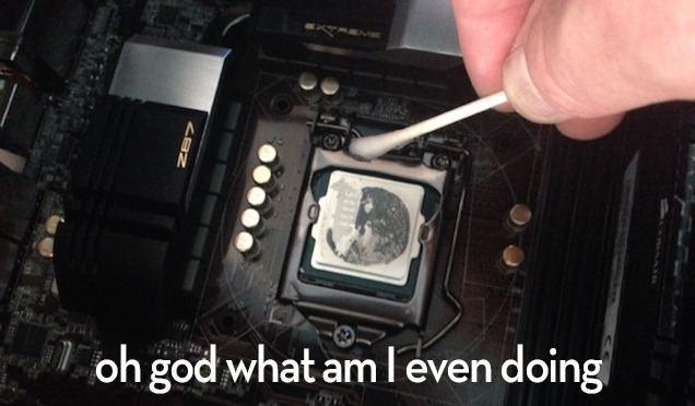 Lots of things about PC-building are pretty straightforward. This thing plugs into the other thing, this card slides into that slot, these screws line up with the screw-holes and you tighten them down. Thermal paste is an annoying bastard because it's loose, it oozes, it must be applied, and therefore it is eminently possible to screw it up.