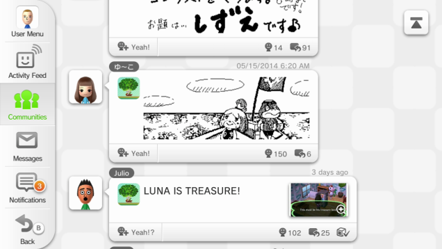 The system's social network, the Miiverse, is somewhat insane but it's also the warmest, friendliest community you can find on a console. From the console, you can go into a message board for a game and find that people are drawing pictures celebrating it. And sometimes those pictures make it back into the games. Cheery! Seriously, it's a nice touch.