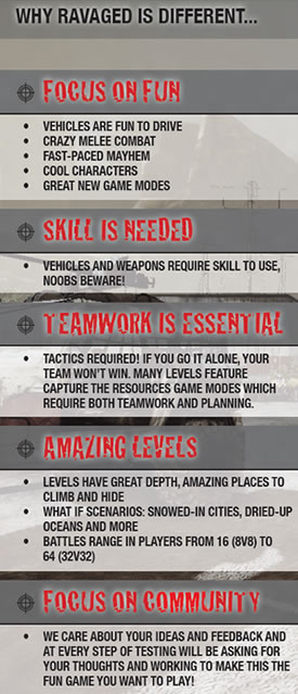 Currently in beta (keys given away at the end of the interview), Ravaged is the brainchild of Boris Ustaev and his crew at 2Dawn Games, who have spent the last few years toiling away on a fast-paced post-apocalyptic multiplayer shooter with a strong focus on skills, teamwork, vehicular combat and most importantly, fun. In other words, it's everything the folks at 2Dawn have wanted in a modern PC shooter, but have been unable to find.