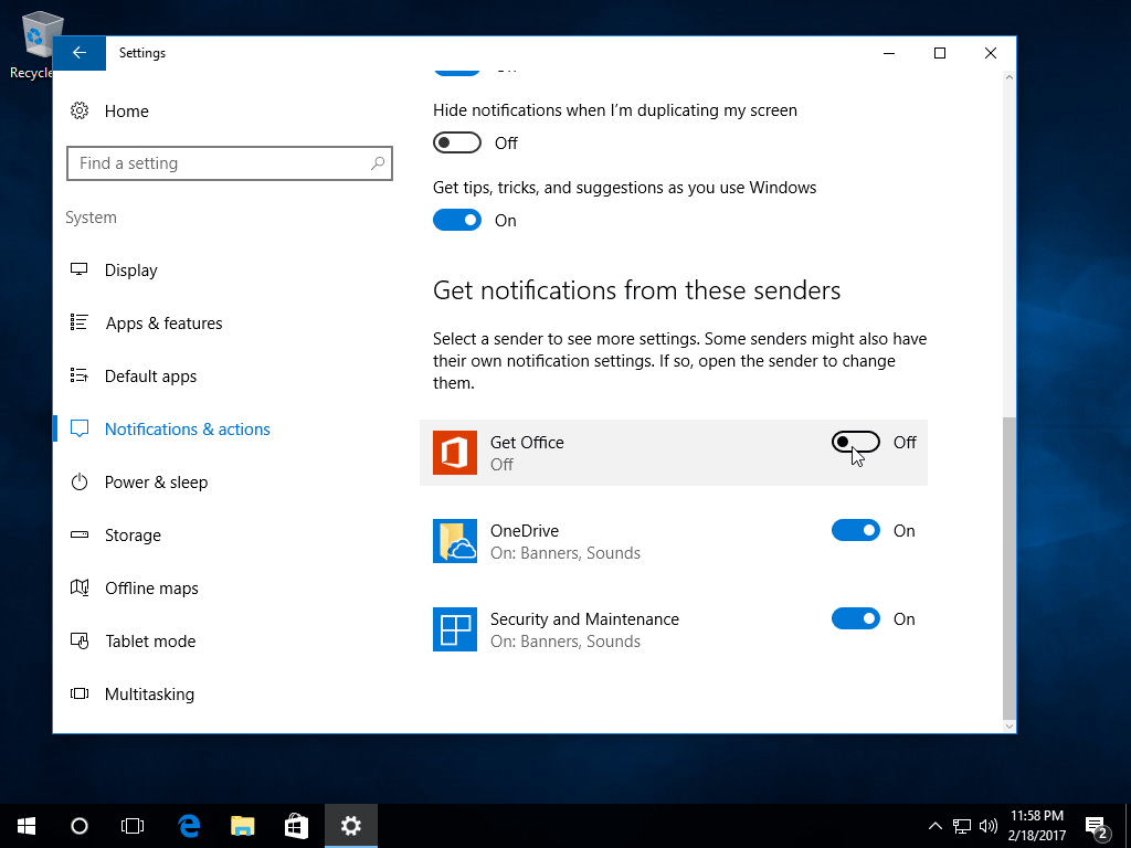 Disable 'Get Office' notifications