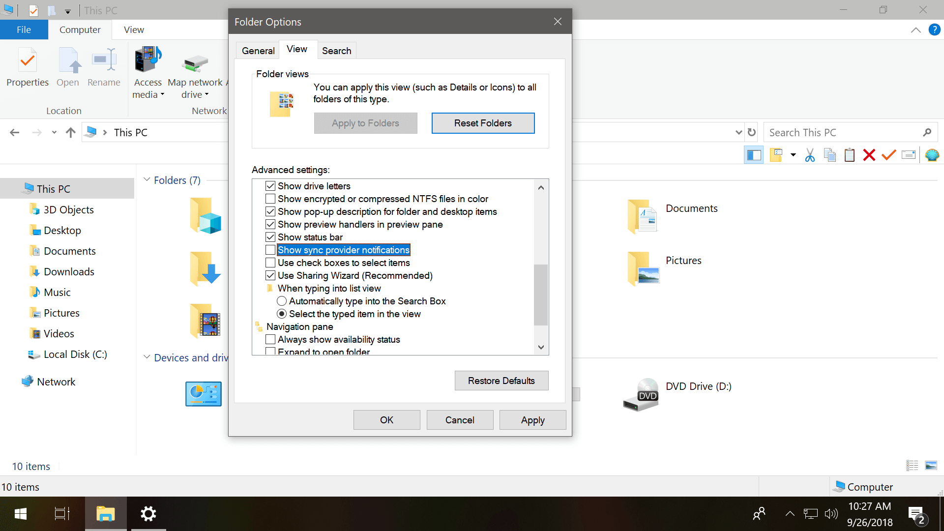Disable ads in the Windows 10 File Explorer