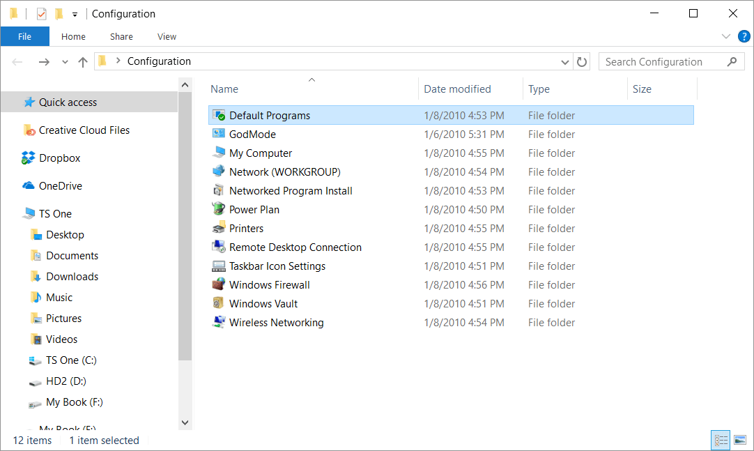 There are numerous other text strings that create similar "God Mode" folders, some have been deprecated, but as of time of writing these still work in Windows 10. You can also download a handy .zip file with all these folders already created.