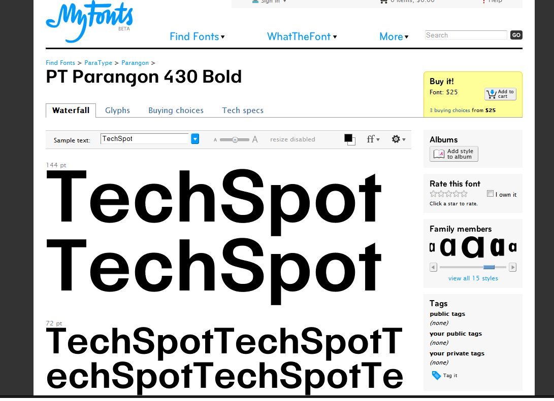 The next screen will present you with a few likely candidates to compare with the original image. Even if it doesn't find the identical font, it will show you some others that look close. If you like something you see, click on the image for more information, to play with some sample text in that style, or to buy the font.