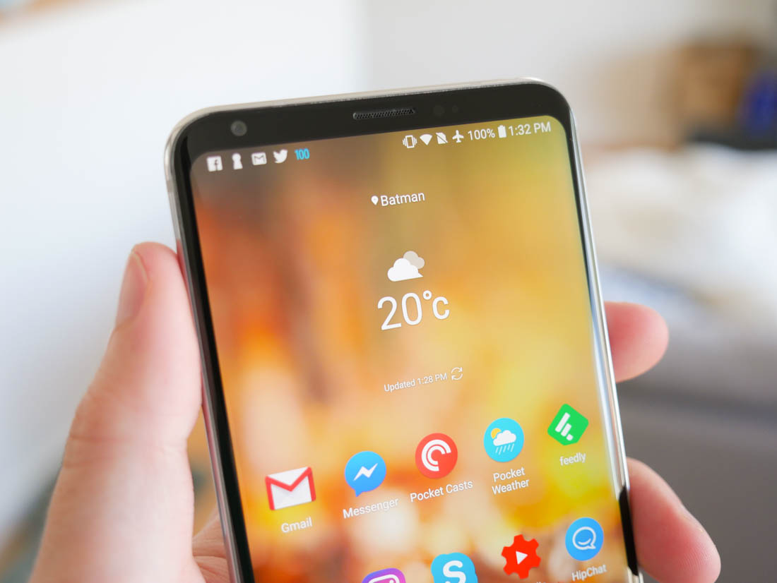 As is the case with most big-screen handsets, the V30 is less usable in one hand than the smaller G6. While its 18:9 6.0-inch display isn't as large as a traditional 16:9 6.0-inch screen, the display is still massive and the upper corners can be a challenge to reach single-handedly. With that said, I found the V30 to be very comfortable to hold and operate for its size; the curved edges help a lot in this regard. Users with smaller hands should probably steer clear though.