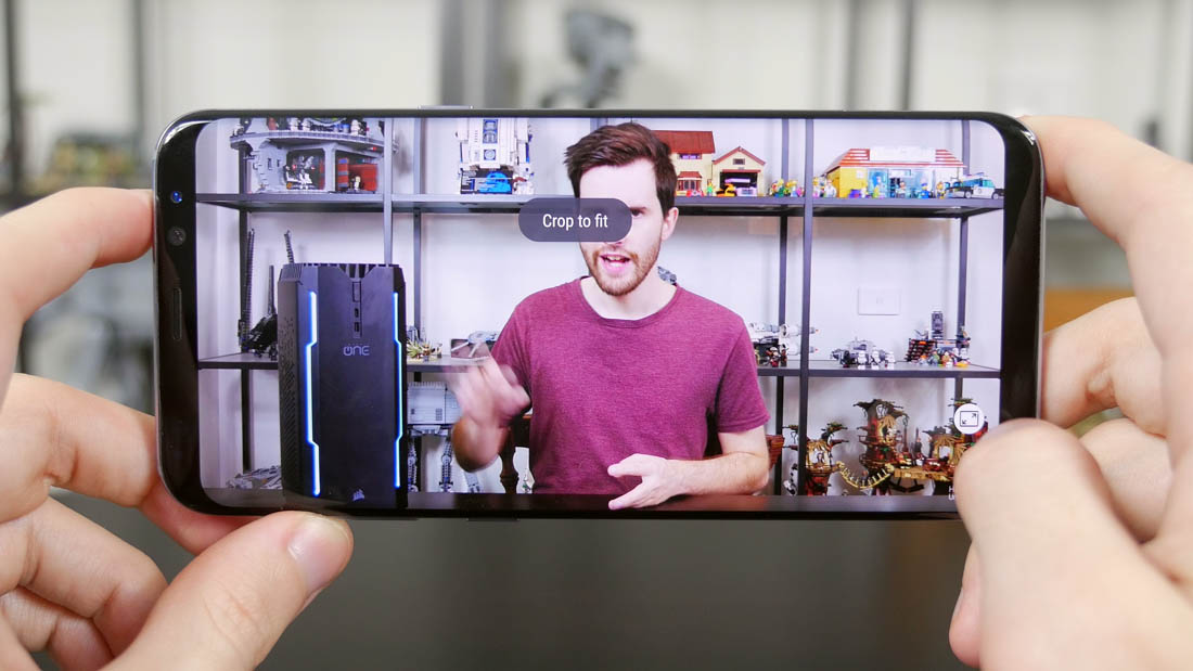 Samsung has a similar button that appears while watching videos in apps like YouTube and so forth, however this button simply zooms in the content to occupy the entire display. Some may prefer this viewing experience, though as it crops off the top and bottom of the video, it's not a favorite of mine. I'd rather watch with small black bars.