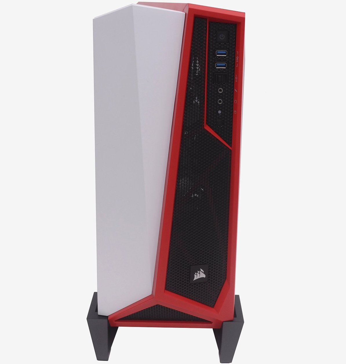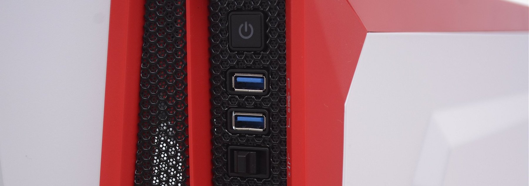 Accurately describing how this case looks isn't easy, so I will let the pictures do most of the talking. As you can see, the left side features a solid panel, though even this is far from boring, featuring a double angled surface. Opposite it is a large ventilated section featuring a black honeycomb grille surrounded by a red bezel.