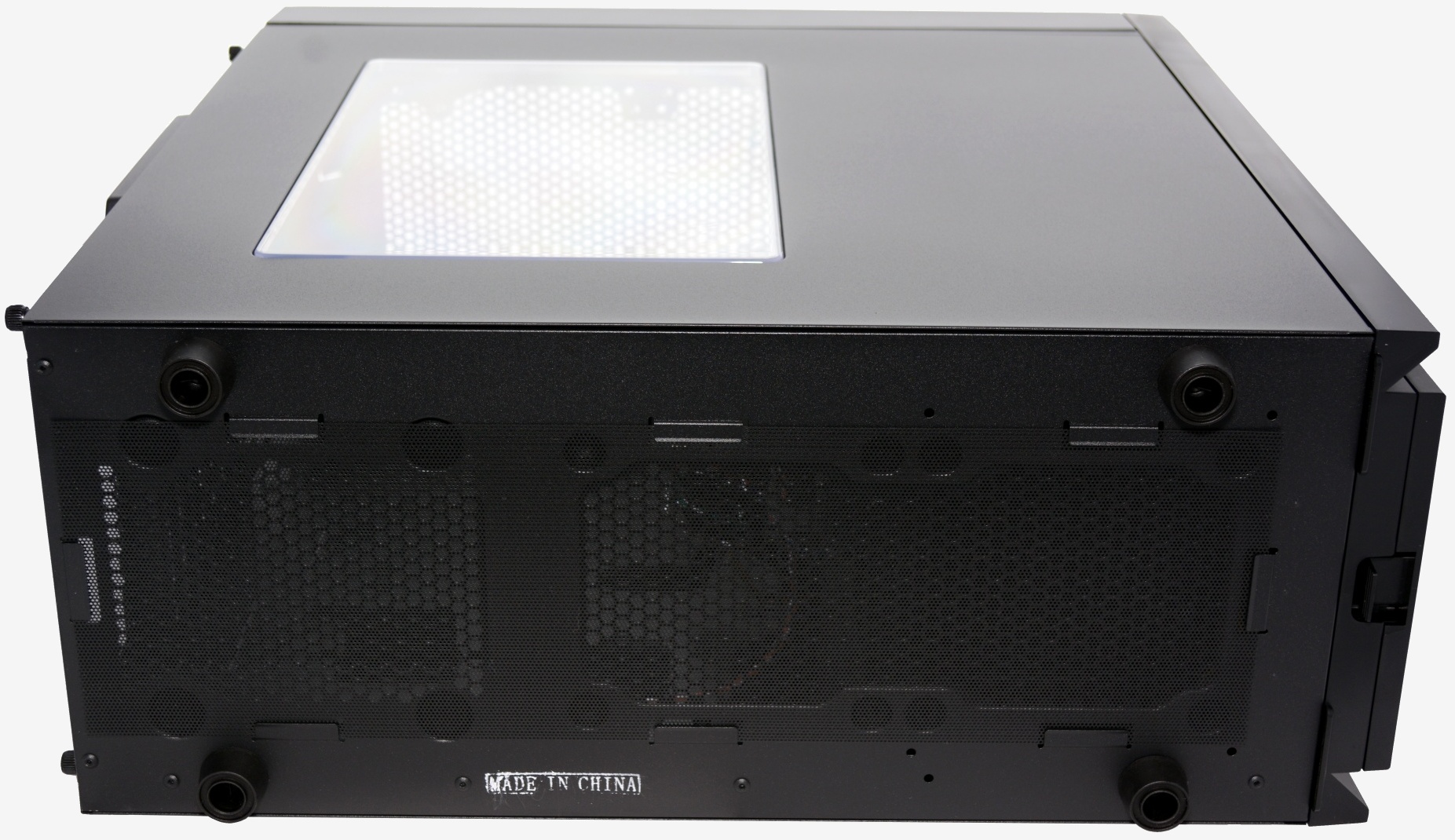 Laying the KL05 on its side reveals four circular feet on the bottom that raise the case 20mm off the ground. There is also a huge removable dust filter that filters air entering the power supply, as well as two optional fans.