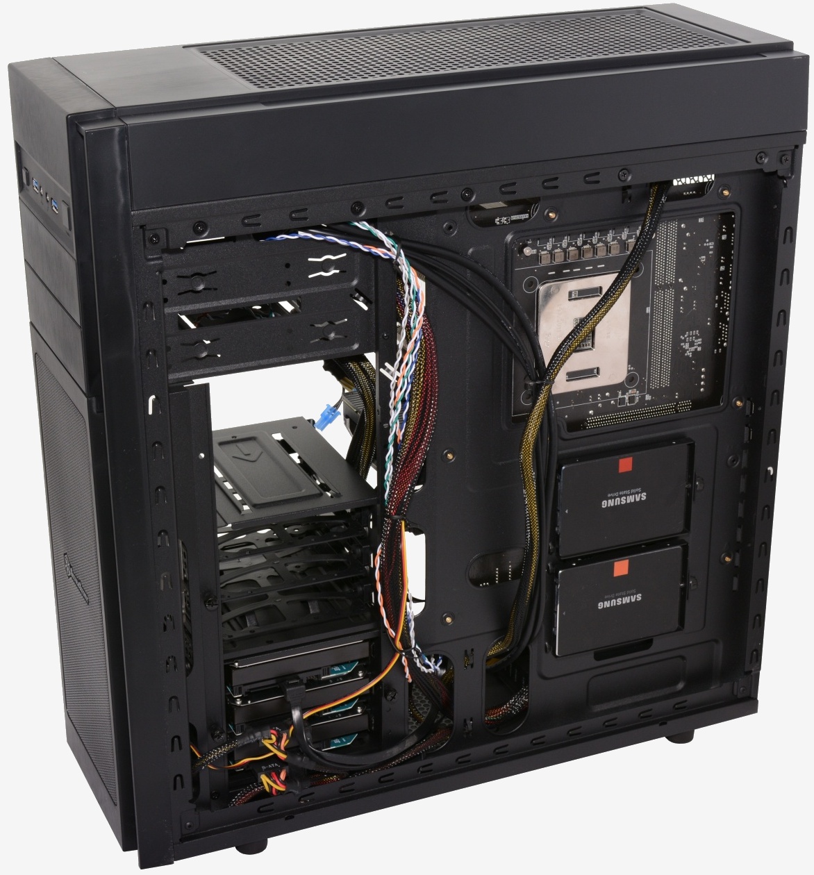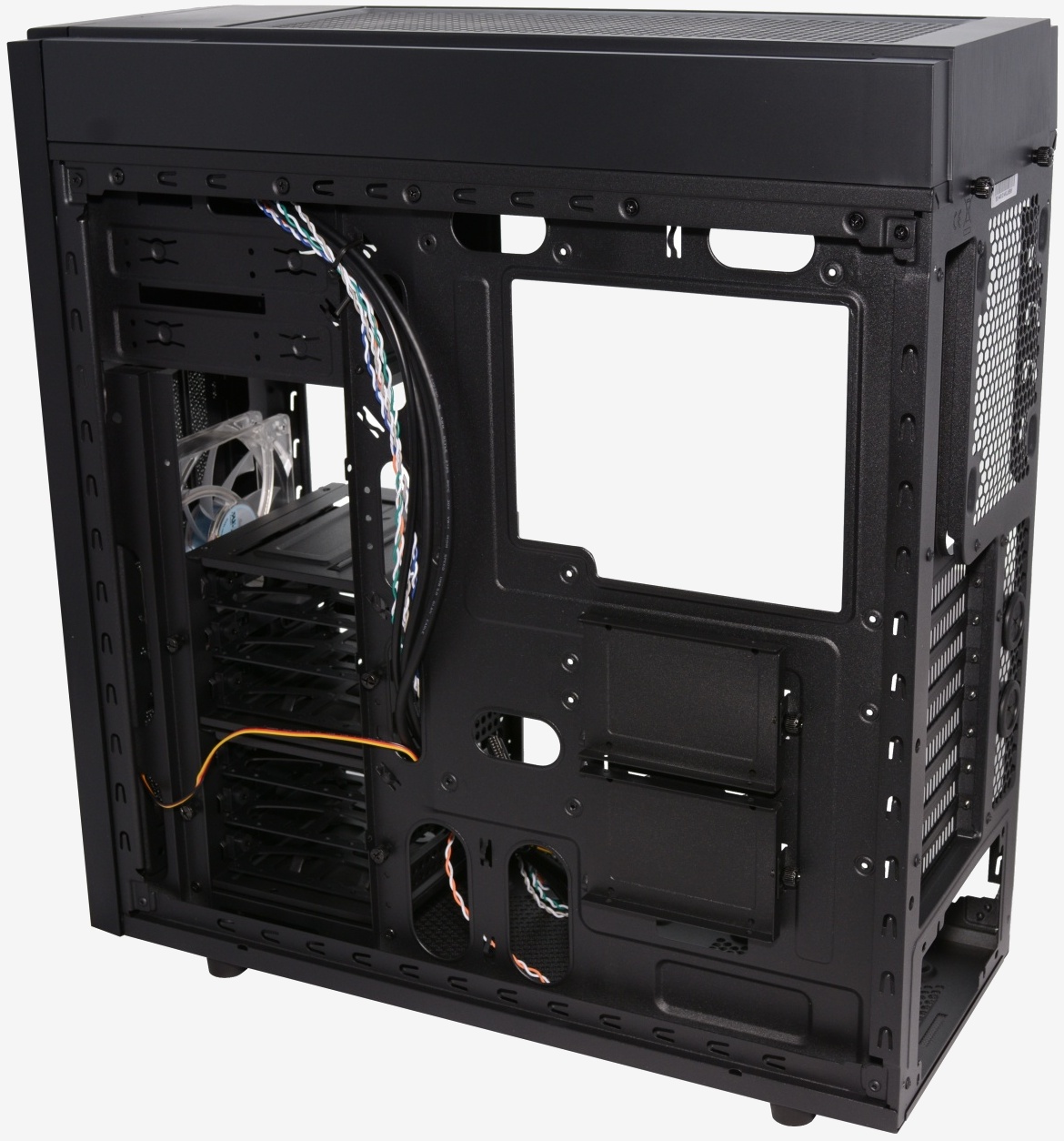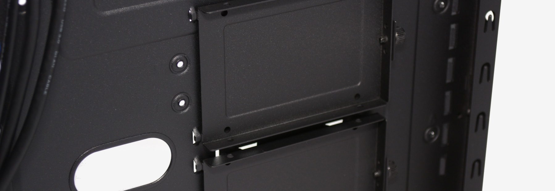 The motherboard tray features a massive cut-out allowing for rear access to the CPU socket using a wide range of AMD and Intel motherboards. There are also a number of access points for routing cables behind the motherboard tray – eight in fact. Also found behind the motherboard tray are two 2.5" drive cages which are handy for installing some speedy SSDs.