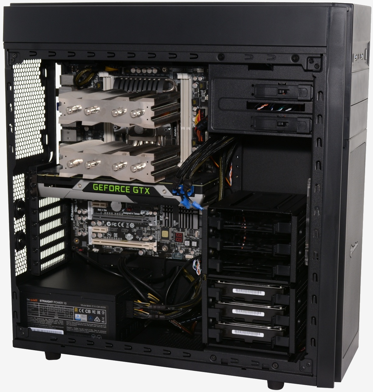 With the power supply installed and hooked up to the motherboard we threw in a GeForce GTX 980 reference card, which fit nicely. There is no reason why you couldn't fit another or perhaps even three more.
