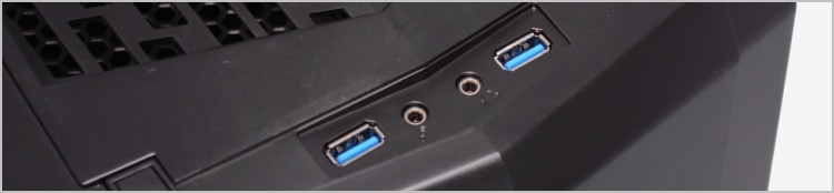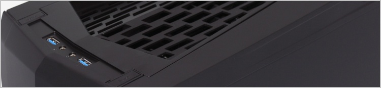 The I/O panel has been moved to the top of the case and this will provide easier access to users who wish to place the Raven 5 under their desk, for example. Included in the top panel I/O are two USB 3.0 ports, two audio jacks with the power and reset buttons merged into the design at either side of the I/O panel.