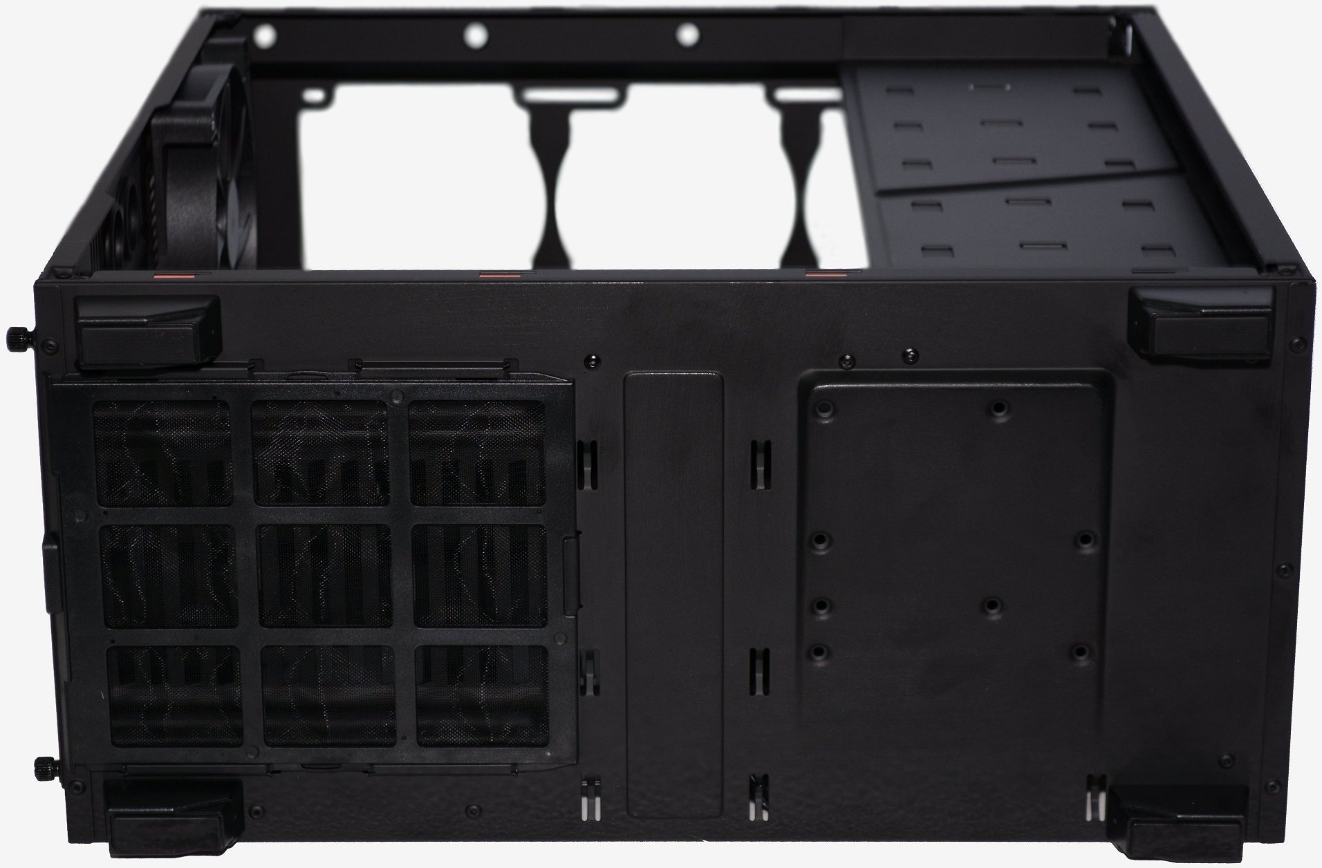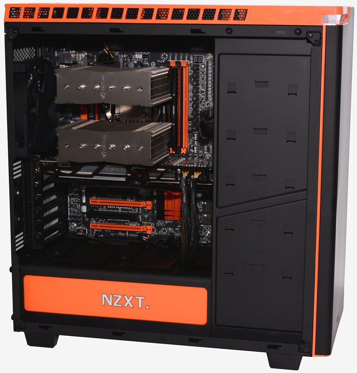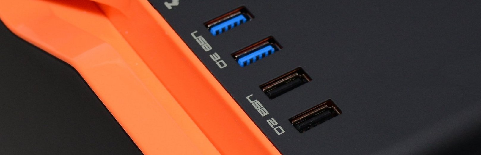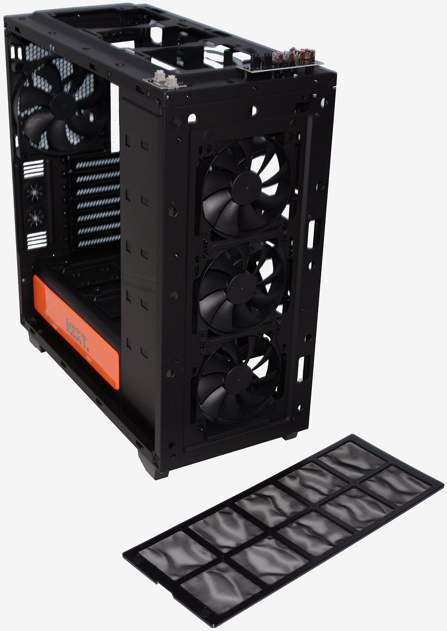 The front cover has a colored border, in our case orange, while the top left cover features a small cut out that can be used like a handle for removing the panel to clean the dust filter covering the in-take fans.