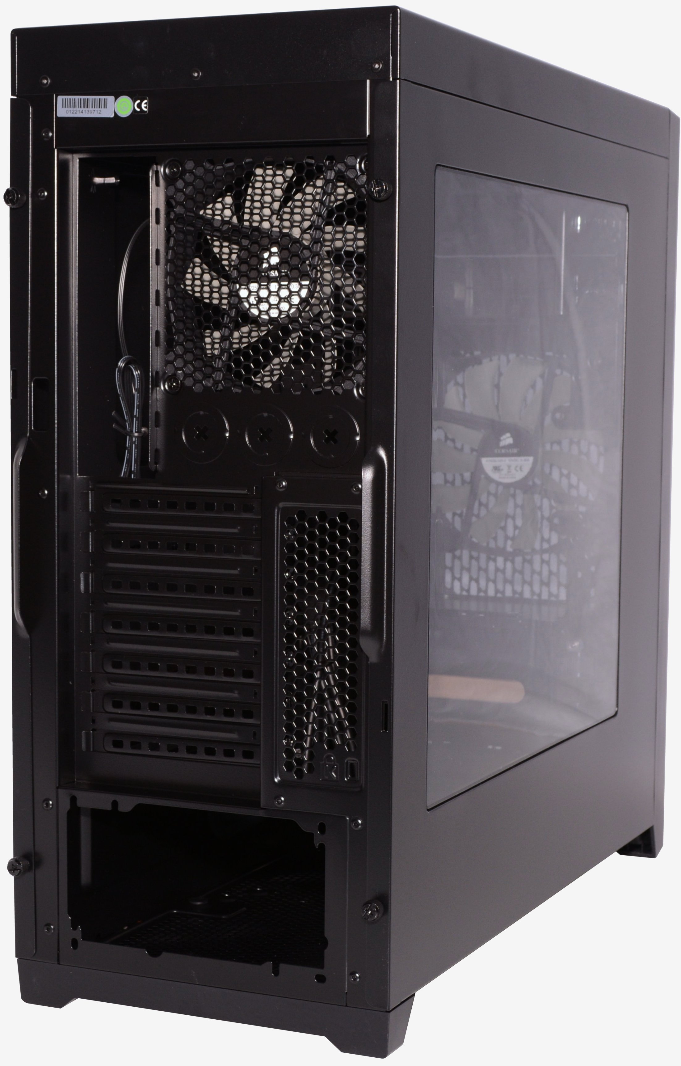 The 450D sports seven expansion slots and three one-inch holes for water-cooling hoses, while the power supply bracket is at the bottom of the case – the norm these days.