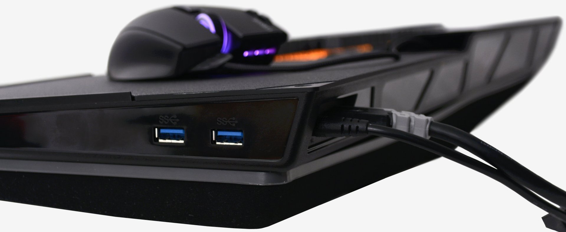 The keyboard uses the cable route through the top of the Lapdog, and there's a small port at the top left of the mousepad for your mouse cable. If you are using a wireless mouse, you could also plug your receiver in at this point, too.