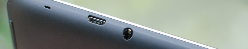 Along the top is both the 3.5mm headphone jack and the micro-USB charging port. There's no full-sized USB port on this device, so if you want to connect external drives - which is possible - you'll need a micro to full-sized USB adapter.