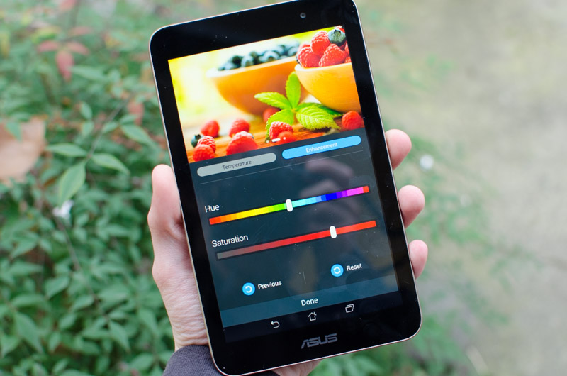A high-end IPS panel would have the benefit of both fantastic saturation and great color depth, usually through full reproduction sRGB color gamut. The MeMO Pad 7 doesn't have such a high-end display, so substitutes like artificial saturation increases are used. I'm glad Asus gives you the option of enabling enhancements through a software utility, rather than making a choice that could reduce quality and then hard-coding it into the firmware.