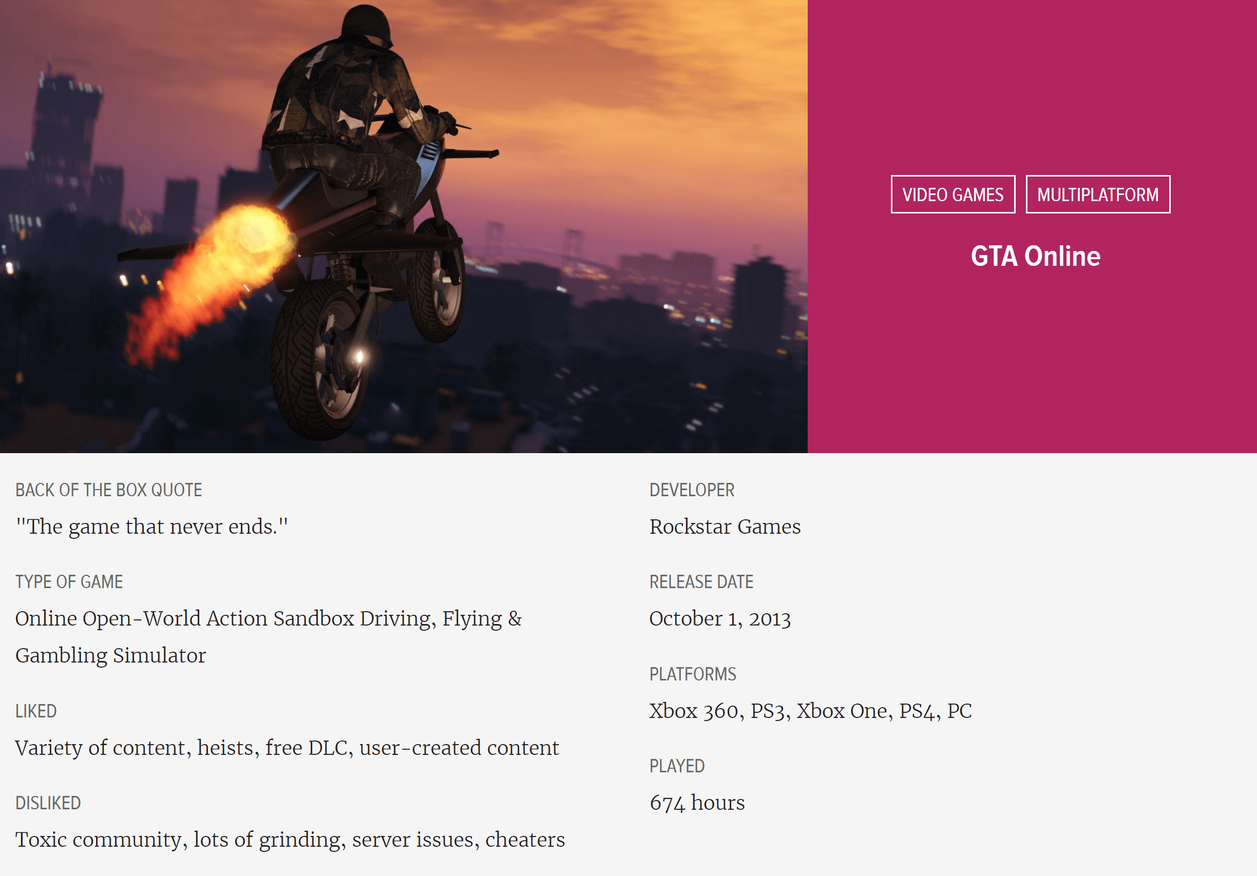 And I'm thankful for it making GTA Online. After 676 hours, I still enjoy logging in and playing with friends or just going around solo doing whatever I want to do that day. And it seems, based on Rockstar porting it to the new machines, that I'll end up putting another 600 hours into this game before it's all over. And that's fine. I don't mind at all. GTA Online is a great game and a world I love returning to, even when some 12-year old decides to blow me up.