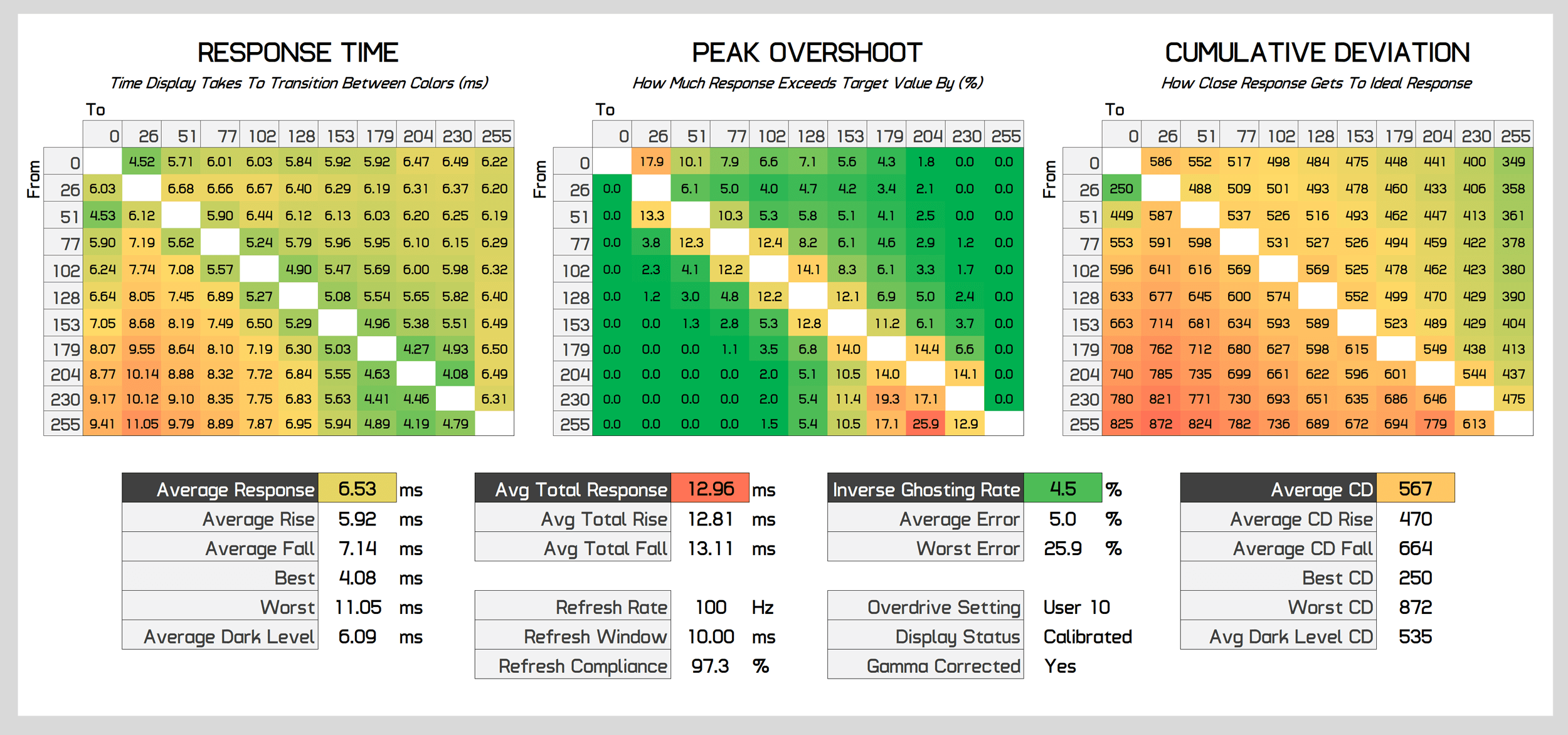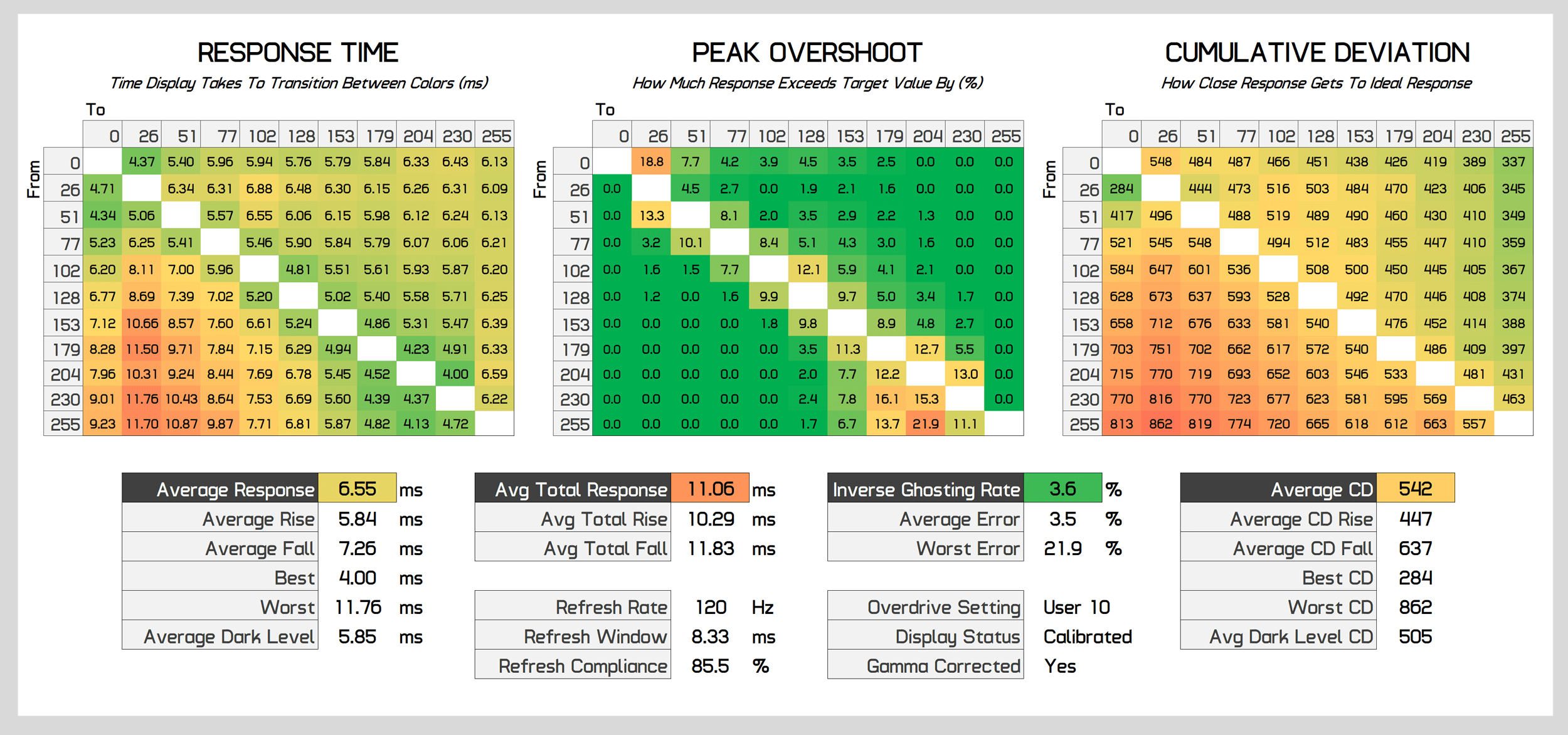 Looking at response time performance, the Spectrum is interesting in that it provides a couple of overdrive settings in addition to user customizable overdrive through a slider. I like this setup a lot as you can really fine tune the settings, so let's see how it performs.