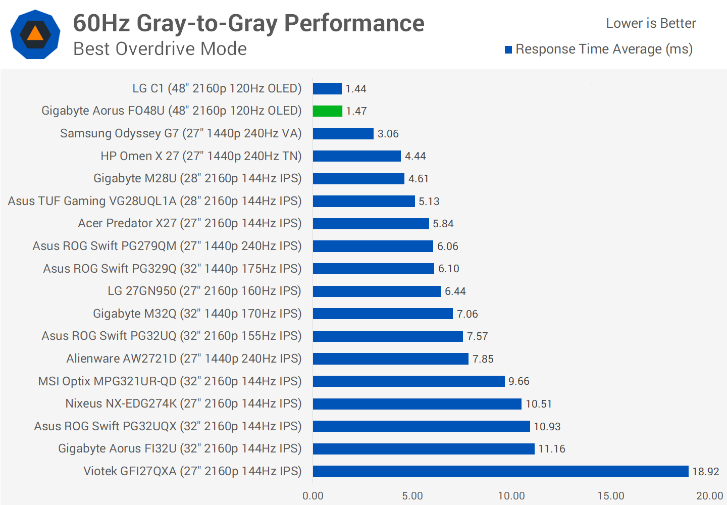 Compared to other monitors, the FO48U destroys LCD panels under the best conditions. Performance is very similar to the LG C1 so you're not missing out there at all, while overall response times are several times better than even the best LCD monitors. The motion clarity as a result is unparalleled and this is one of the major reasons to get an OLED instead of an LCD.