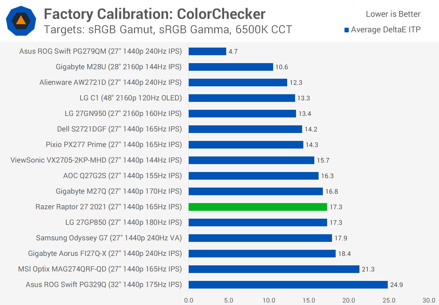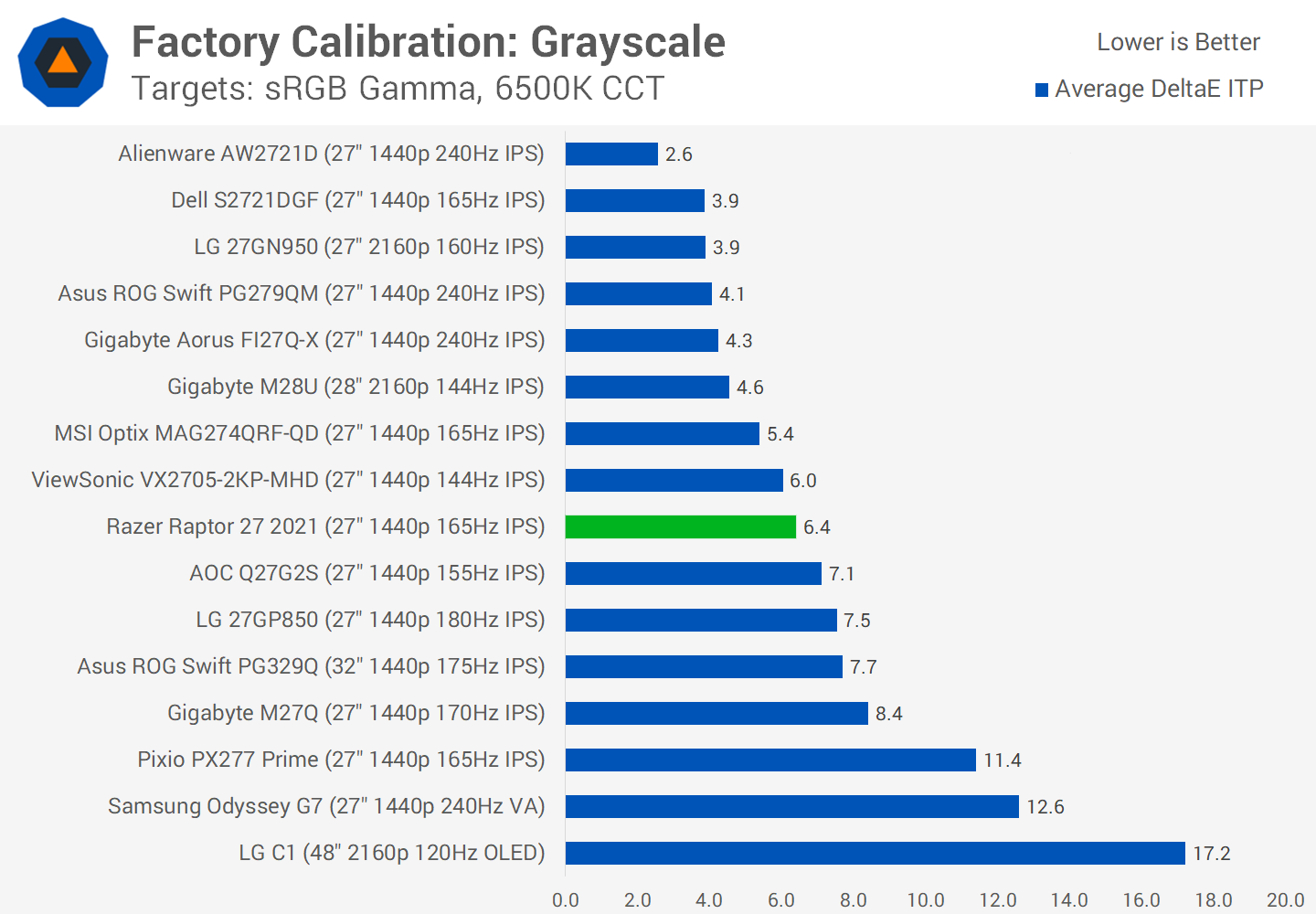 And I just want to be clear that this isn't some magical mythical performance benchmark that no monitor has ever reached. I've tested several high end monitors that do actually come factory calibrated, or at least factory calibrated to a very good extent. The Raptor 27 is not one of those displays.