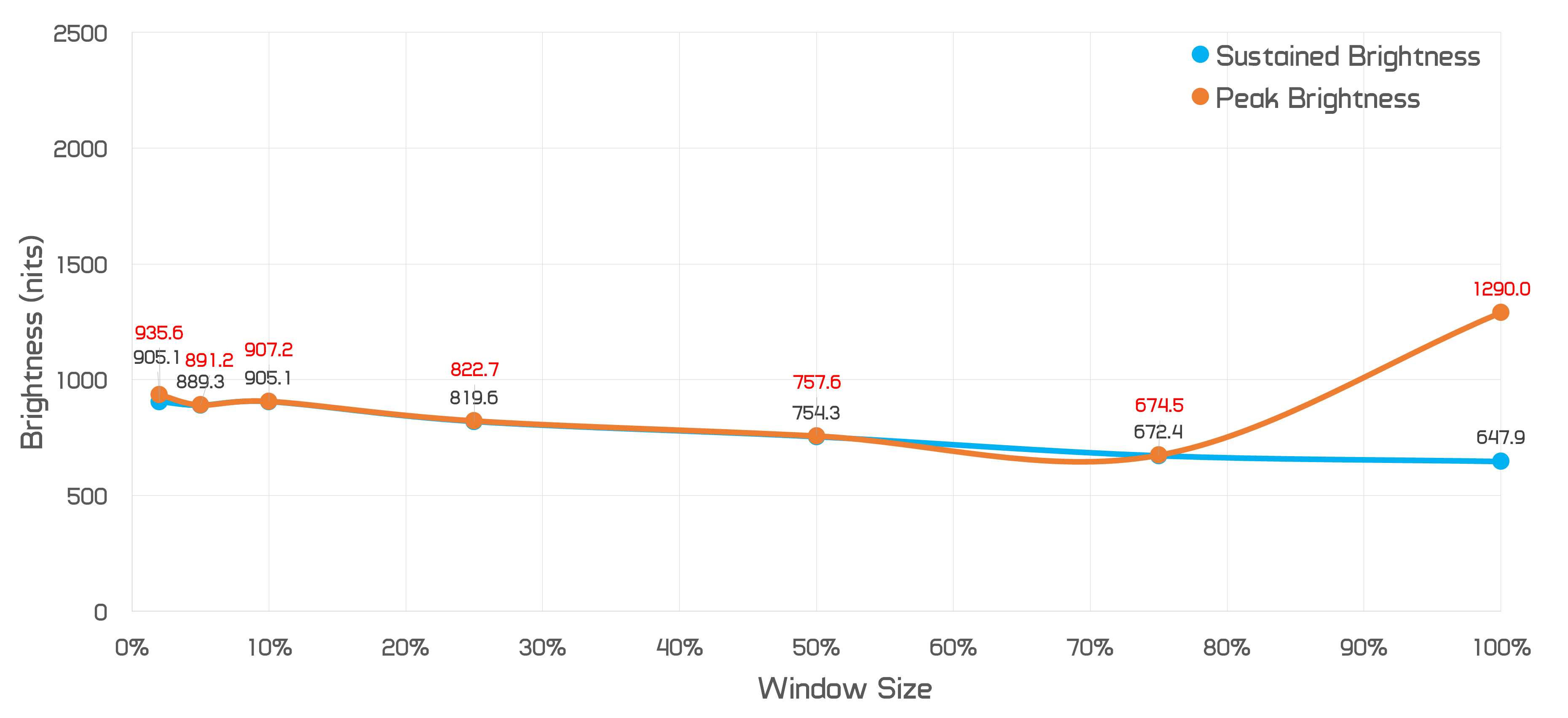Then we get to sustained brightness in a 10% window and the Neo G9 is actually a regression compared to the regular G9, at 905 nits versus 1085 nits. This isn't a big deal for HDR content but it did surprise me a bit. And it only gets weirder from here.