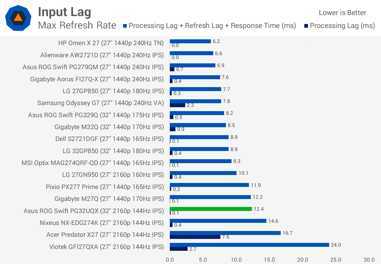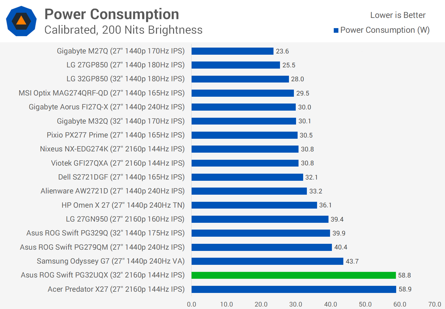 Input latency is acceptable given the response time results, with next to no processing delay. The only elements holding this display back are the 144Hz refresh rate - 240Hz monitors will naturally have better input lag - as well as the slower response times. As for power consumption, being a G-Sync product with a FALD backlight, power consumption is higher than most other monitors which use more simple backlight constructions that tend to be more efficient.