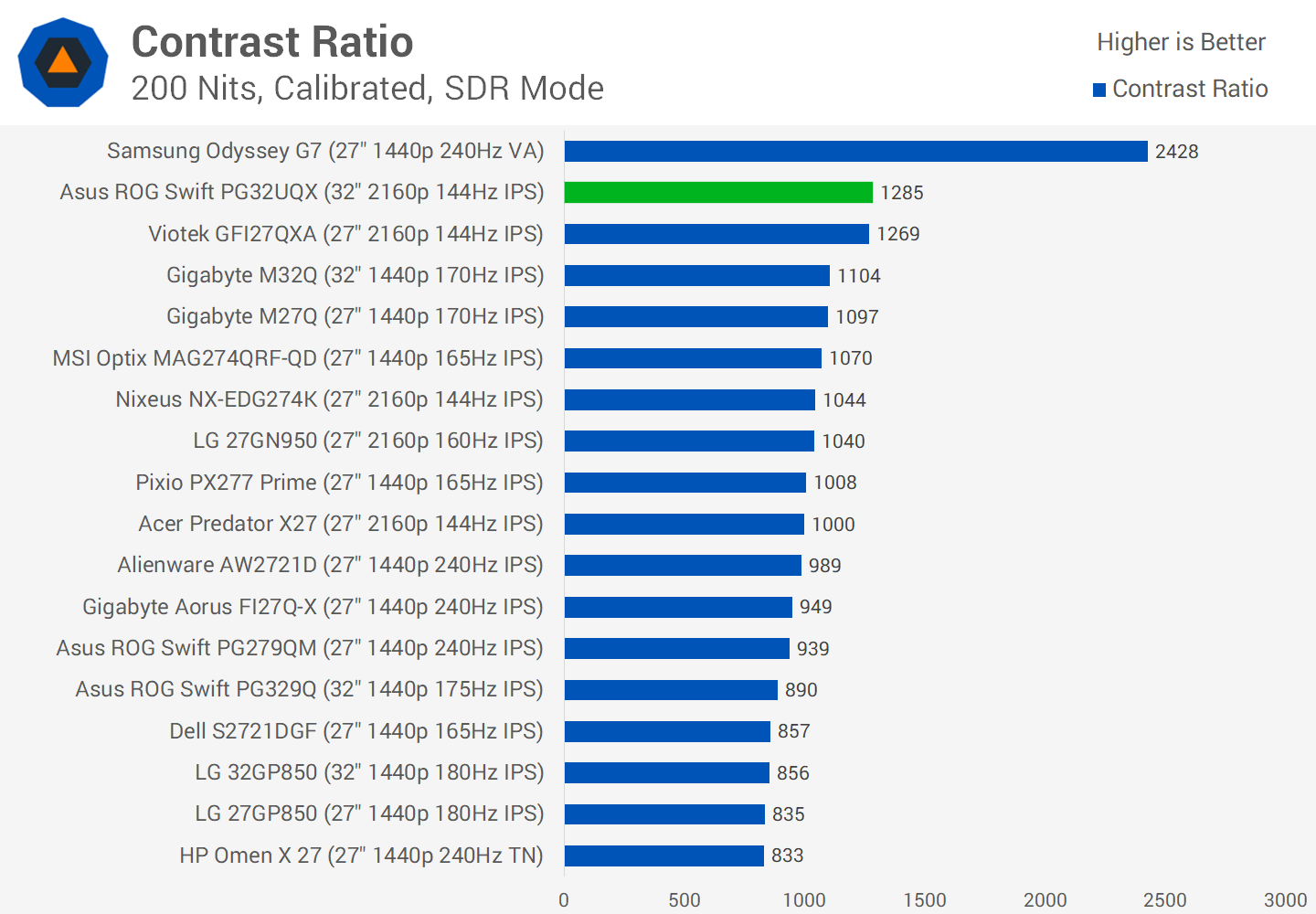 I suspect that a part of this can be attributed to the display's long development cycle. Asus announced this display back in early 2020, and was likely being worked on for years before that in partnership with Nvidia and AU Optronics. The length of time it took for it to hit the market has unfortunately seen this area of performance superseded.