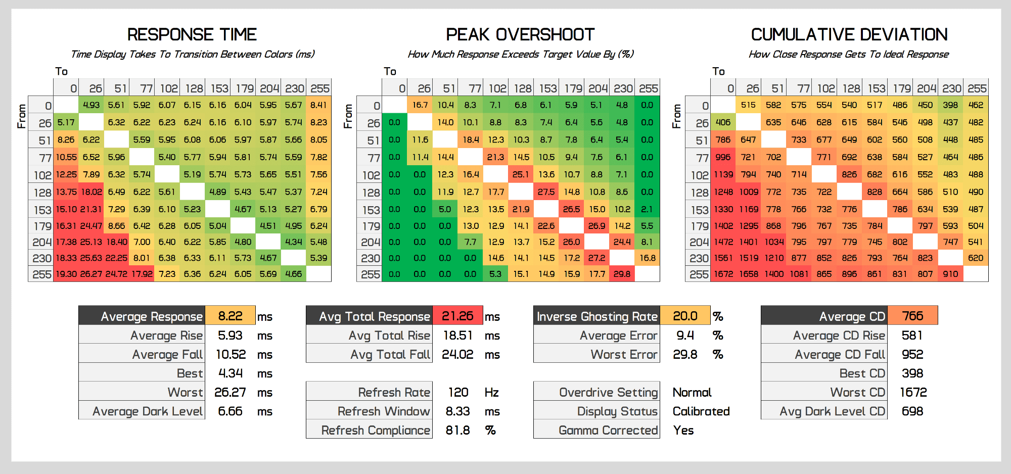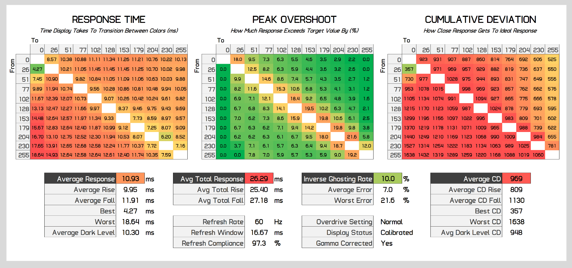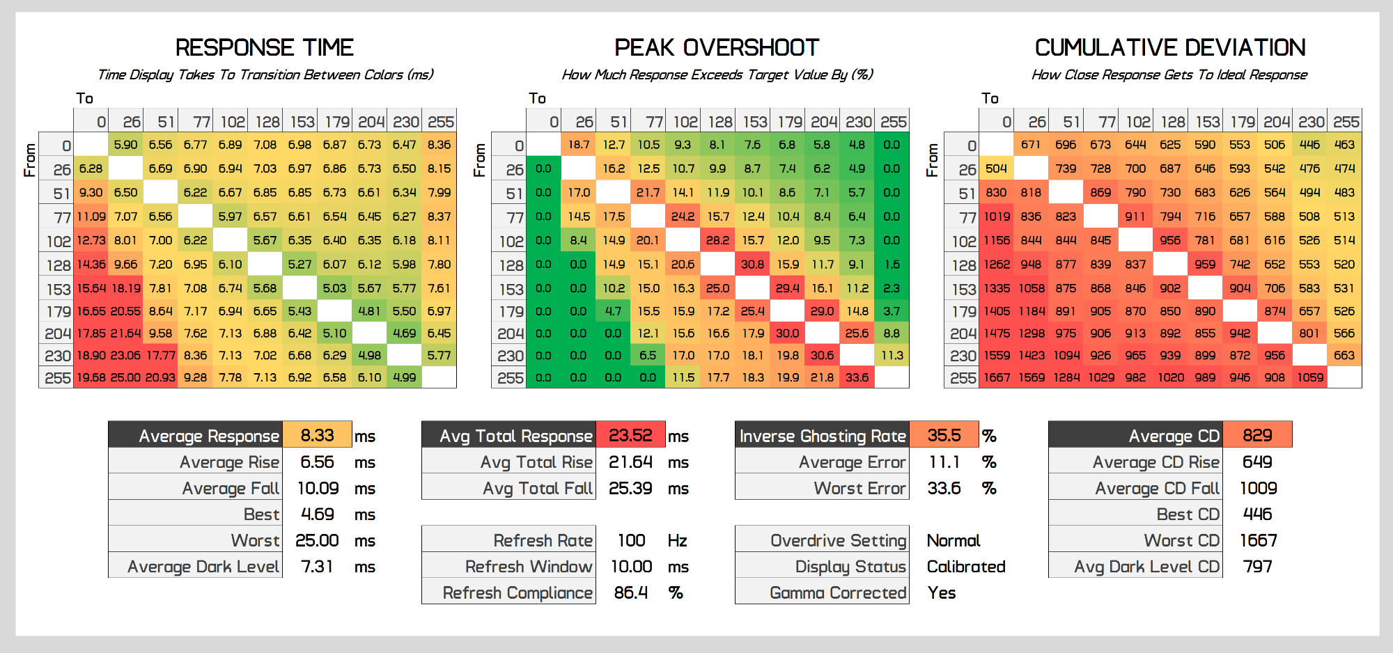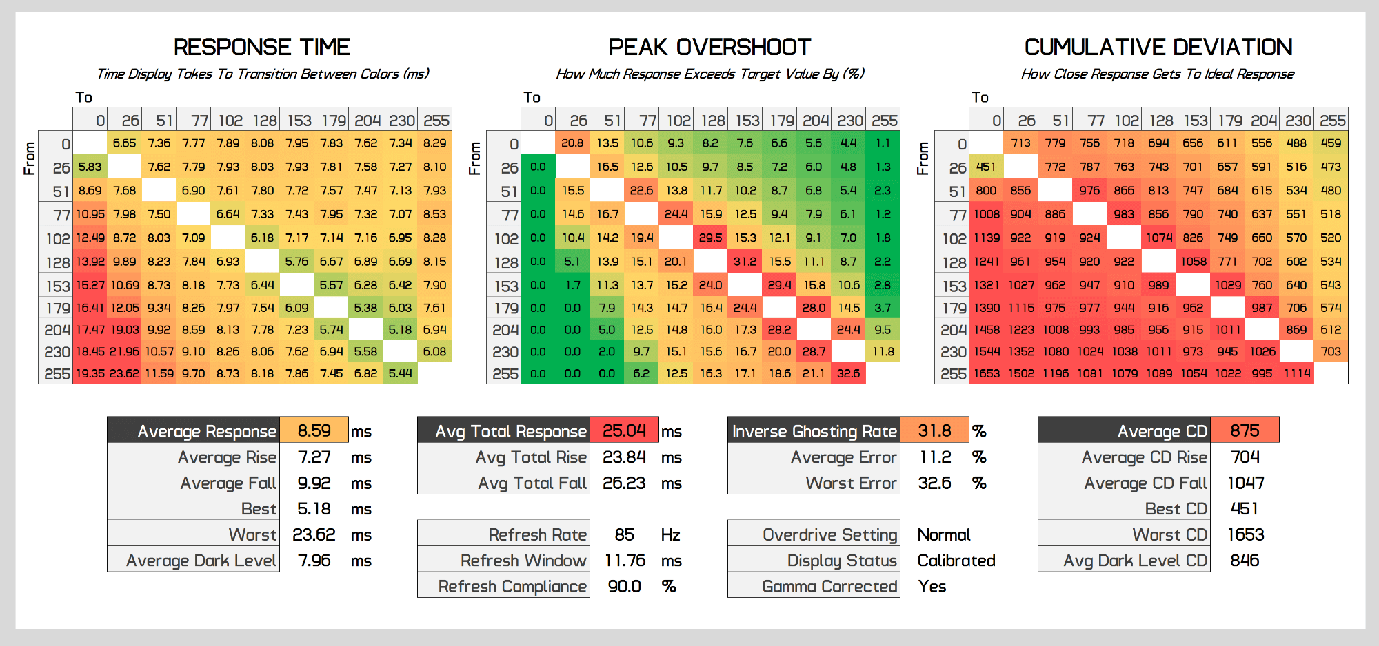 Dark level performance isn't that much of an issue, so despite some slow fall times, you won't see much dark level smearing, certainly nowhere near the level of the worst VA panels.