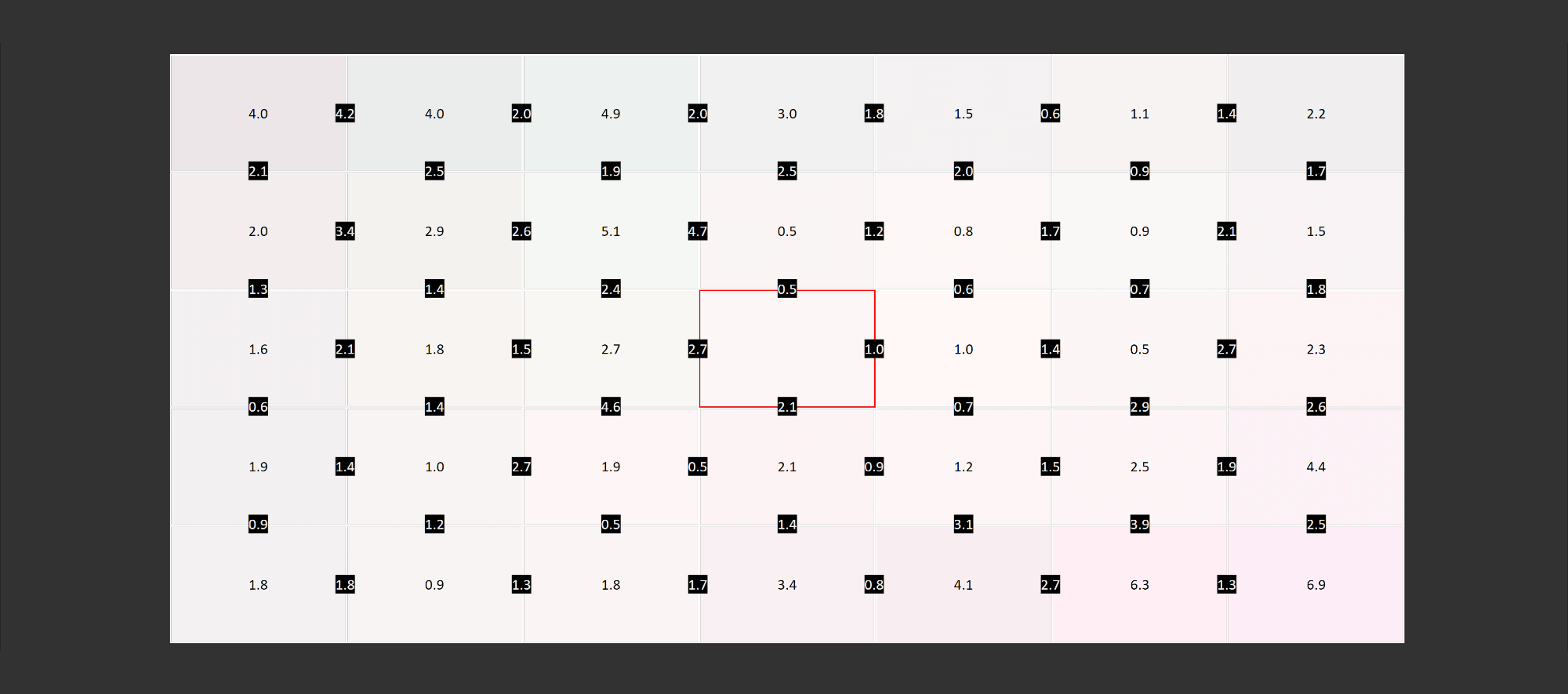 So what my monitor ended up being was reasonably uniform for the most part, but with a few areas that had a noticeably different color tone. In the upper middle-left area I measured a slightly blue tint relative to the center, and in the bottom right there was a slightly red tint. This isn't noticeable when viewing content or playing games, but if you're just looking at a perfectly uniform image - like the background of a webpage or a blank document - you may spot this. At the end of the day this is just the reality of current FALD monitors which are more designed for content consumption than perfect studio grade uniformity.