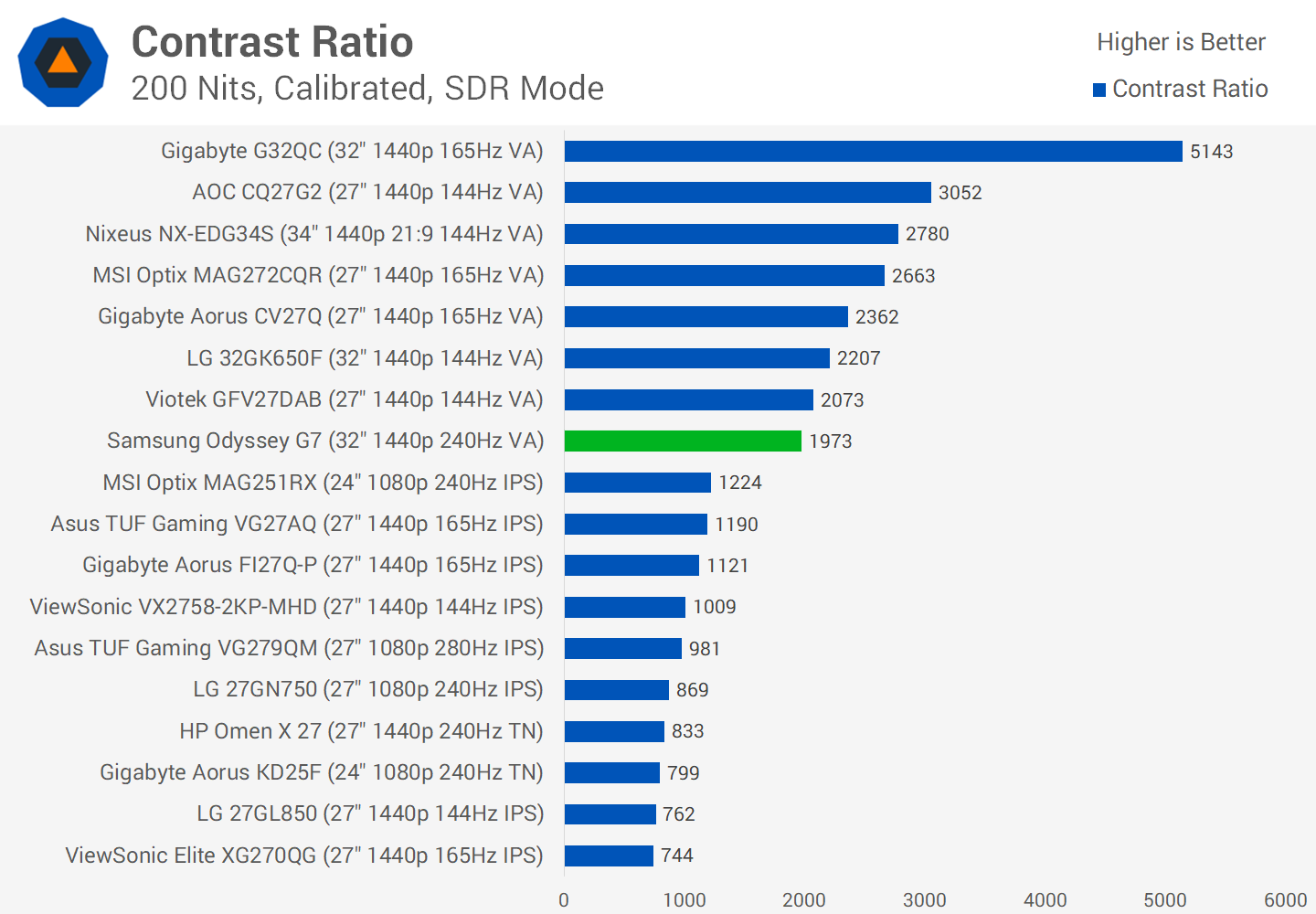 Given this TN-like response time, experience is paired with double the contrast ratio, better viewing angles, a wide gamut experience and a bit of semi-HDR on top. We'd say that overall the G7 is a better choice than a TN equivalent like the HP Omen X 27, even if the Omen is slightly faster and also cheaper.