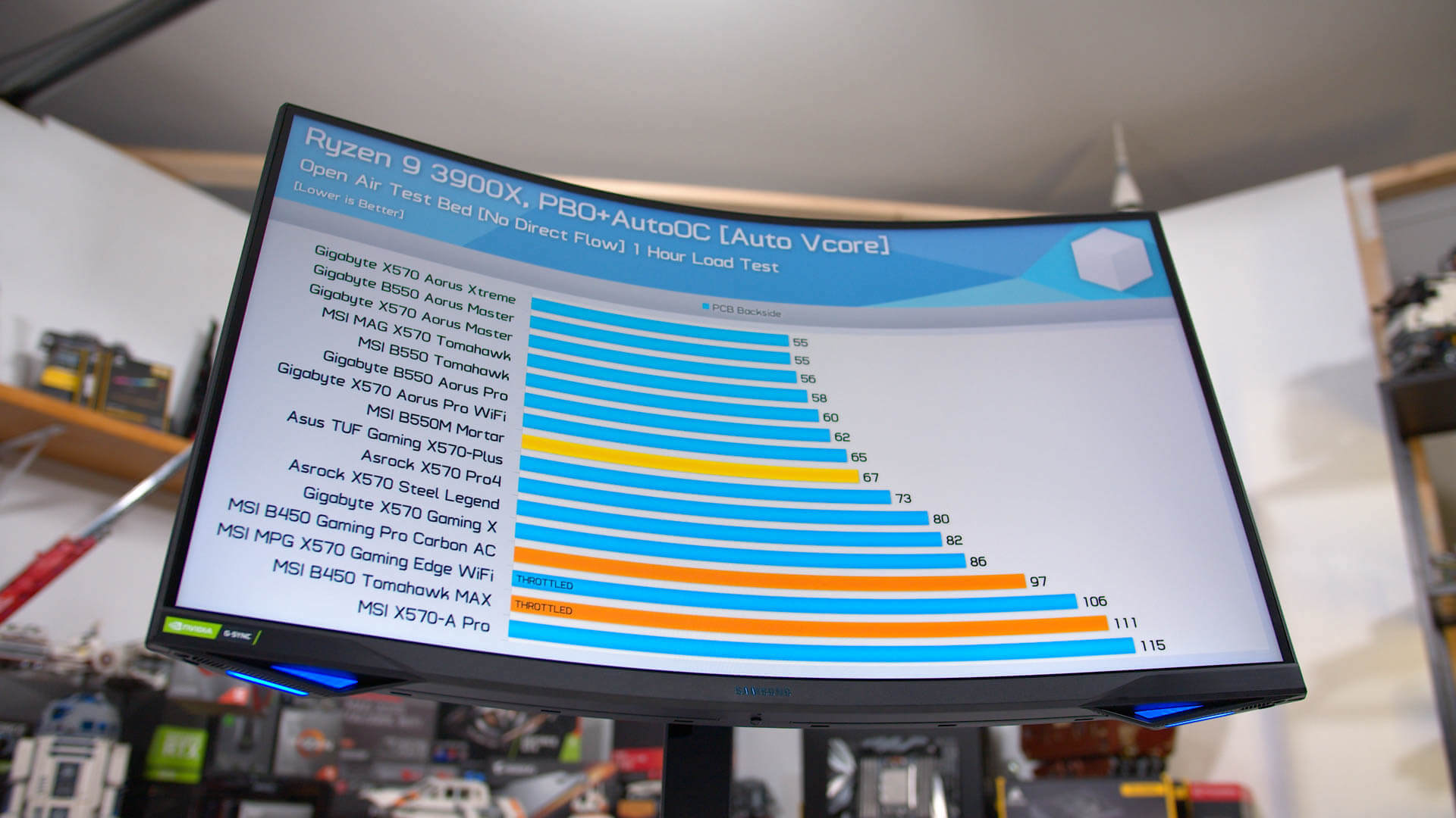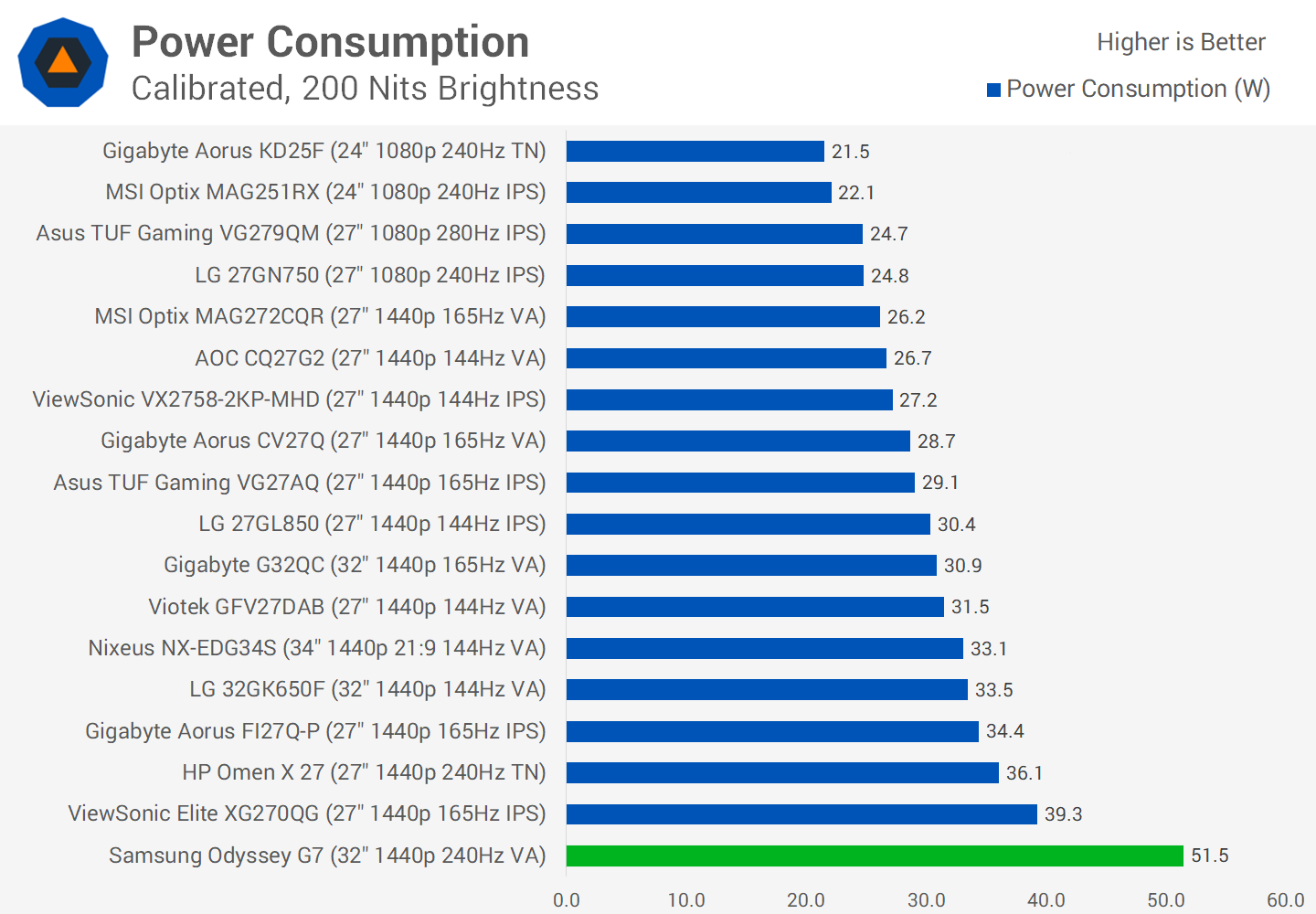 The one area where the Odyssey G7 is noticeably worse than the competition is power consumption. To achieve this level of performance, the G7 sucks down over 50W of power, which is ~70% higher than a typical 32-inch 1440p display at the same brightness level. This is without the monitor's RGB lighting enabled, too.