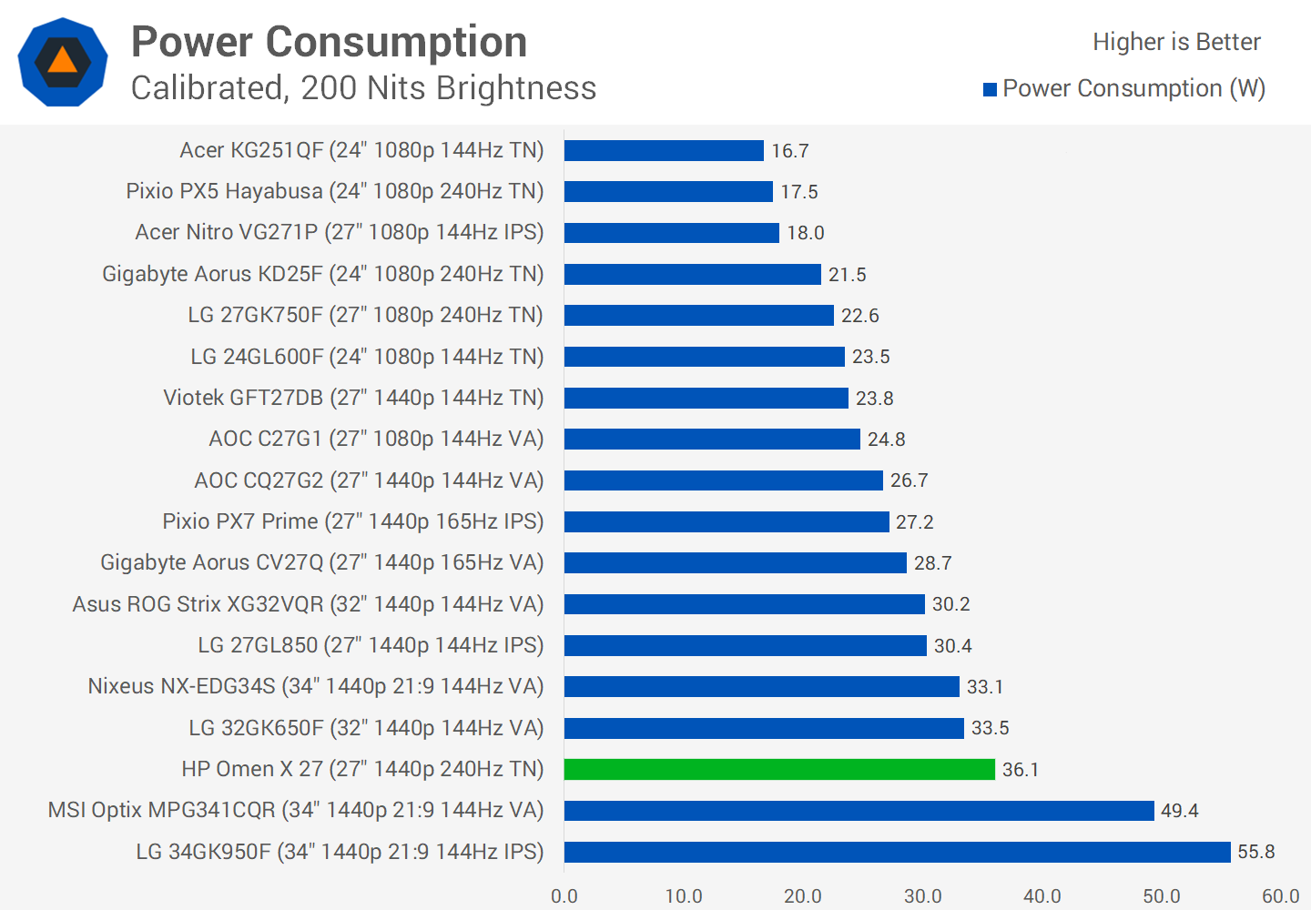 All of this does come at higher than usual power consumption for a 27-inch monitor. Power usage is more than 50% higher than the Viotek GFT27DB and other TN panels, which may concern you, or it might not given we're still below 40 watts.