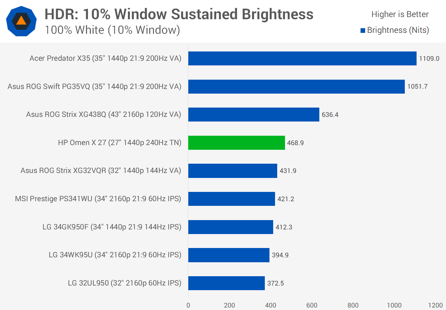 But let's forget about HDR performance because we don't think you'll be buying the Omen X 27 for that feature. What you'll be interested in is the combination of a 1440p resolution and 240 Hz refresh rate. That's the star of the show and it's always exciting and interesting to test these sorts of new panels with new technologies.