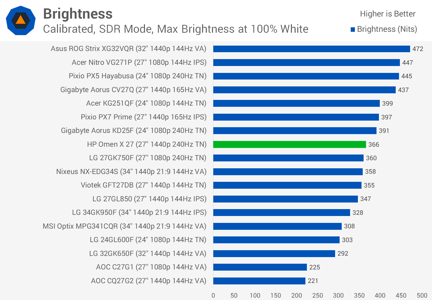 The HP Omen X 27 is a great gaming monitor. There are some issues brought about from using a TN panel, but that's nothing unusual for this panel type and everything else is excellent. Response times are fast enough to keep up with the 240 Hz refresh rate with a bit of room to spare, so even though we are getting an increase to resolution over older 1080p 240Hz monitors, nothing has changed as far as performance is concerned. This is a really quick monitor that delivers a top-class, highly responsive gaming experience.