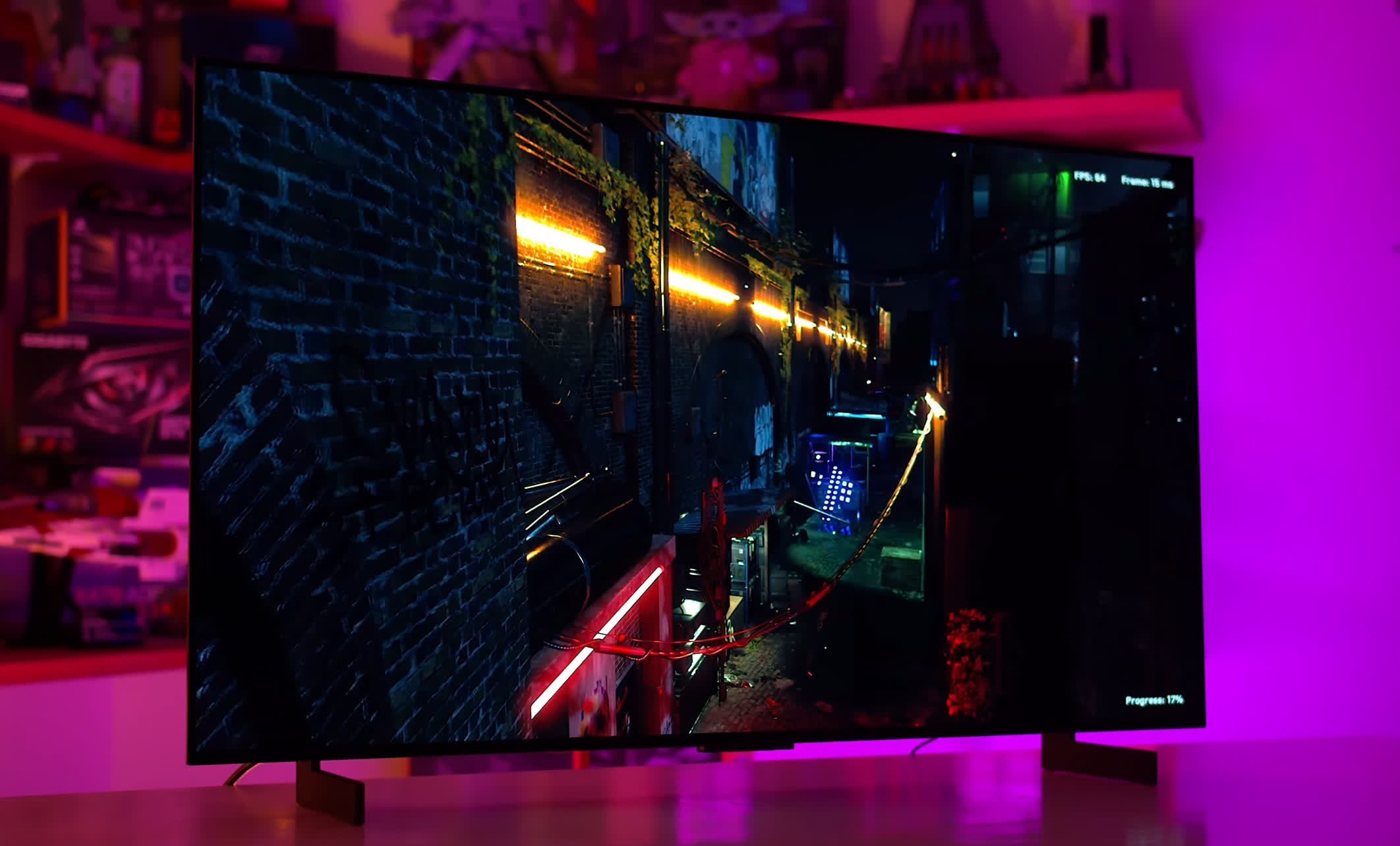There are several other strengths here, too, such as support for hardware calibration, a wide P3 color gamut, outstanding viewing angles, and proper HDMI 2.1. However, like other OLEDs, this display isn't very suited to productivity work due to its flawed RWBG subpixel layout that affects text clarity, risk of permanent burn in and low brightness. However, we found the matte screen coating to be good in general.