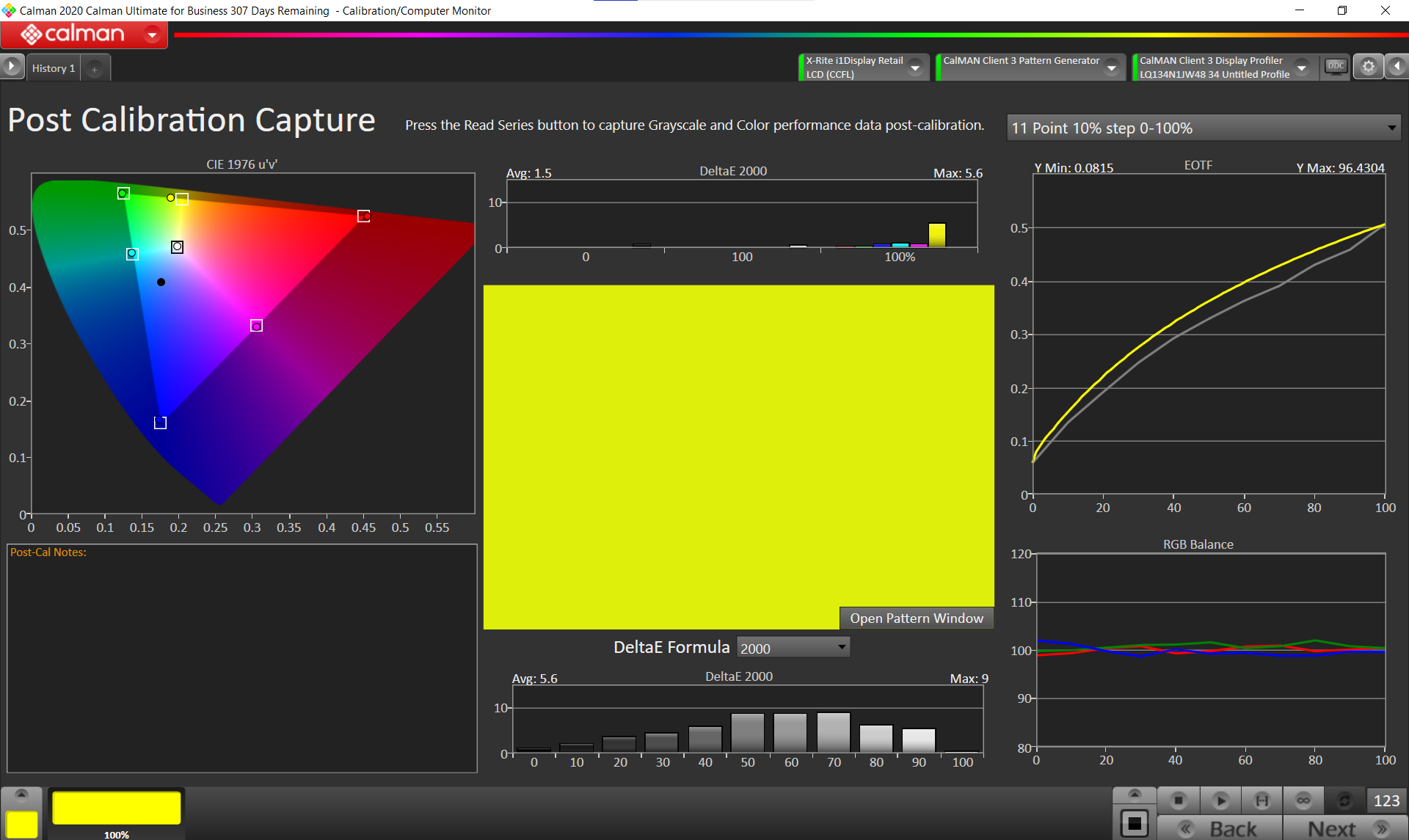 After running through Calman's computer monitor calibration, I was able to lower the DeltaE values to something more respectable. For color, the display ended up 1.5 for color and 5.6 for grayscale.