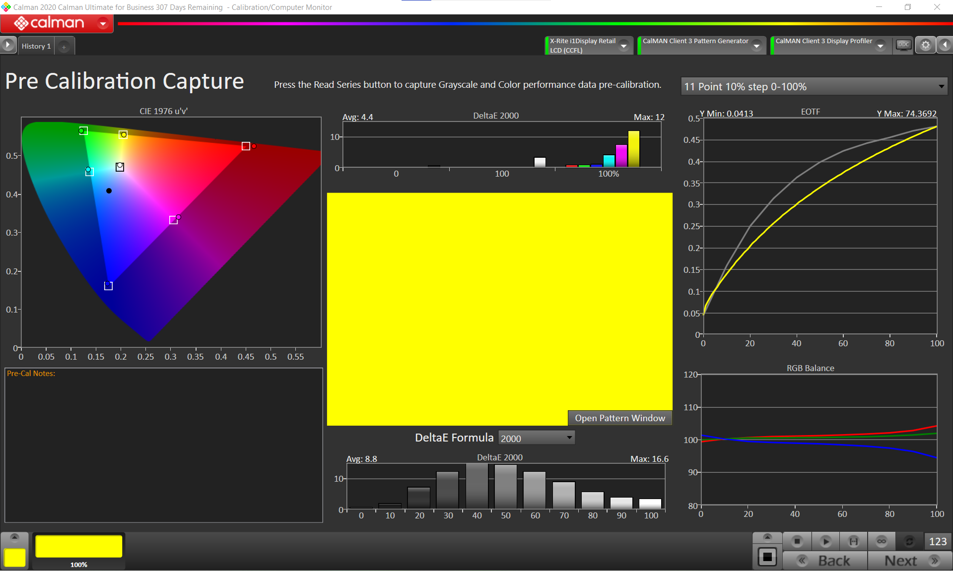 Pre-Calibration performance of the Book 13 in Calman Studio from Portrait