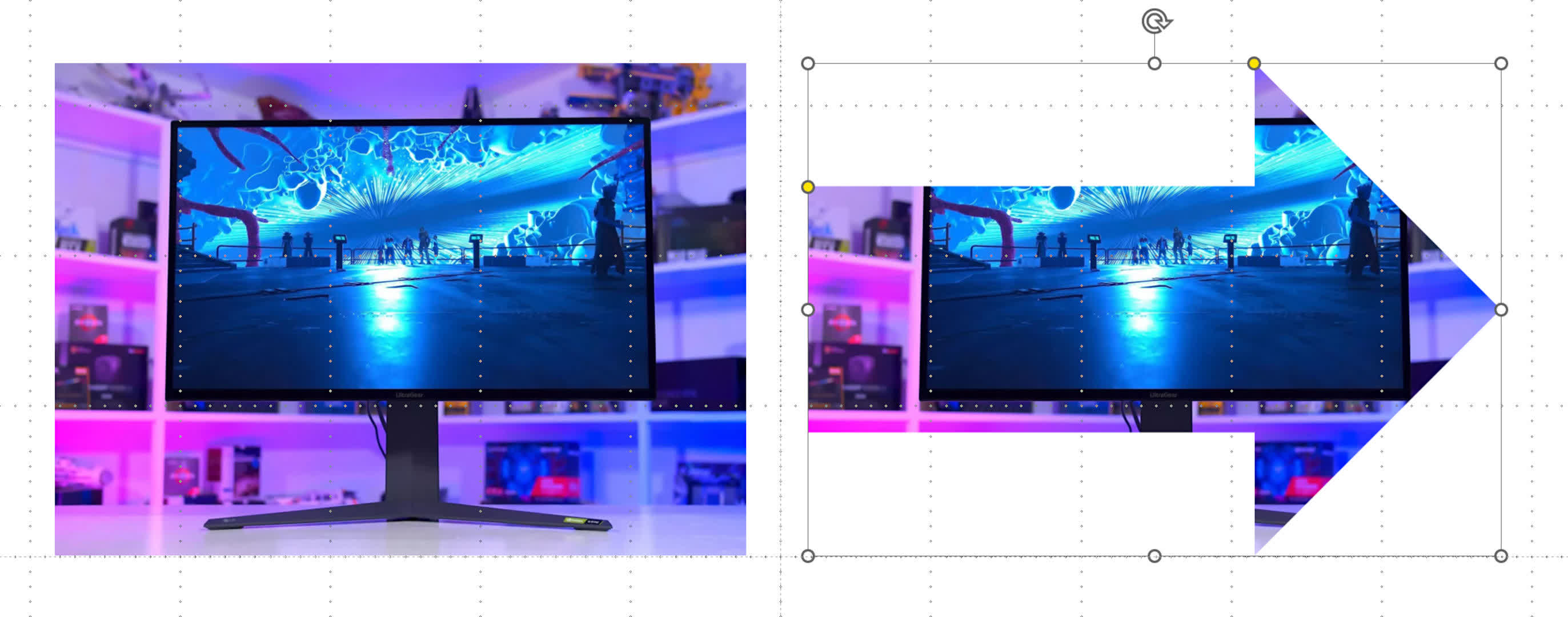 Crop to Shape is especially useful for creating versions of pictures that have more of a creative impact, than just using the original image. Not all shapes make for a useful crop, but ones like the curved corner rectangle or the block arrows can easily give your presentation the visual kick that you're after.