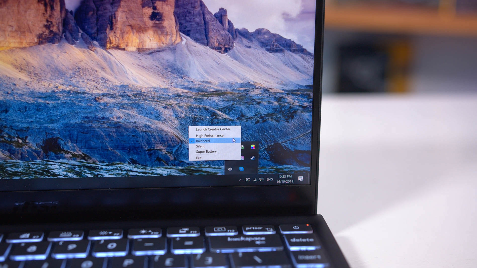Of note, there are a few different performance profiles. The "balanced" mode in MSI's Creator app sets this laptop to the CPU's default 15W configuration. That is 15W on the long term PL1 power limit, and 45W on the PL2 limit. Using the "high performance" mode bumps this up to the maximum 25W configuration: 25W PL1 and 51W PL2. These power figures are similar to previous generation laptops, so we'll be able to draw a few comparisons.