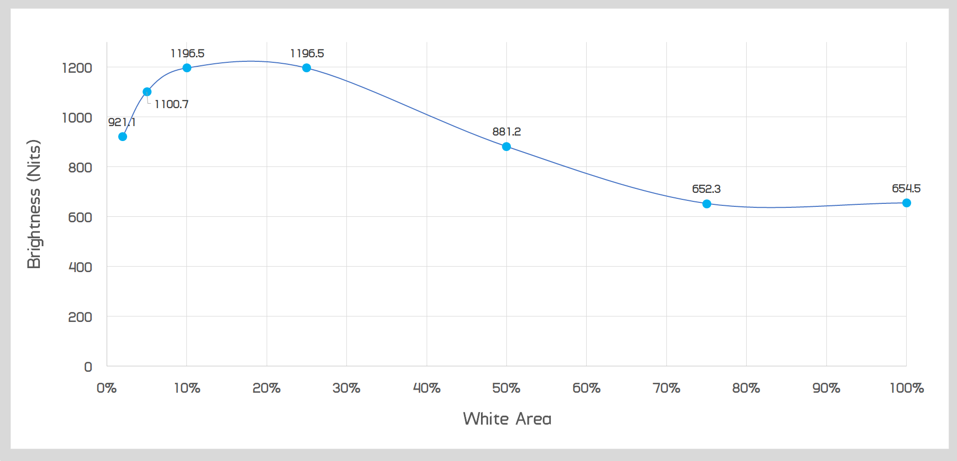 In terms of brightness accuracy, the PA32UC gets within 10% of the exact nit target when viewing HDR content, which is a good result. The panel is capable of up to 1200 nits with a window size up to 25%, after which it falls back to its 650 nit sustained value. Unfortunately the PA32UC can't produce a 1000 nit full screen flash, again topping out around 700 nits. However the backlight's lowest level of just 0.012 nits is the lowest I've seen from an HDR monitor with local dimming. This creates a contrast ratio up to 98,000:1 in best case scenarios. Gamut coverage is also around 96% DCI-P3 so the monitor is capable of displaying colors well outside a normal SDR range.