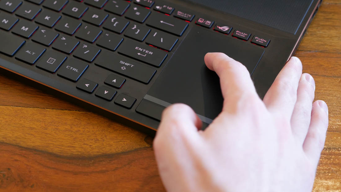 The trackpad is another point of contention, due to its odd location on the right side of the keyboard. Personally I don't mind the trackpad in this location, I find it pretty easy to use and tracking performance is good, though naturally it won't be for everyone. It's good to see Asus acknowledging this, and even including a wired mouse in the box for gaming. The trackpad also doubles as a numpad, and this functionality works far better than a similar implementation I used recently on an MSI laptop.
