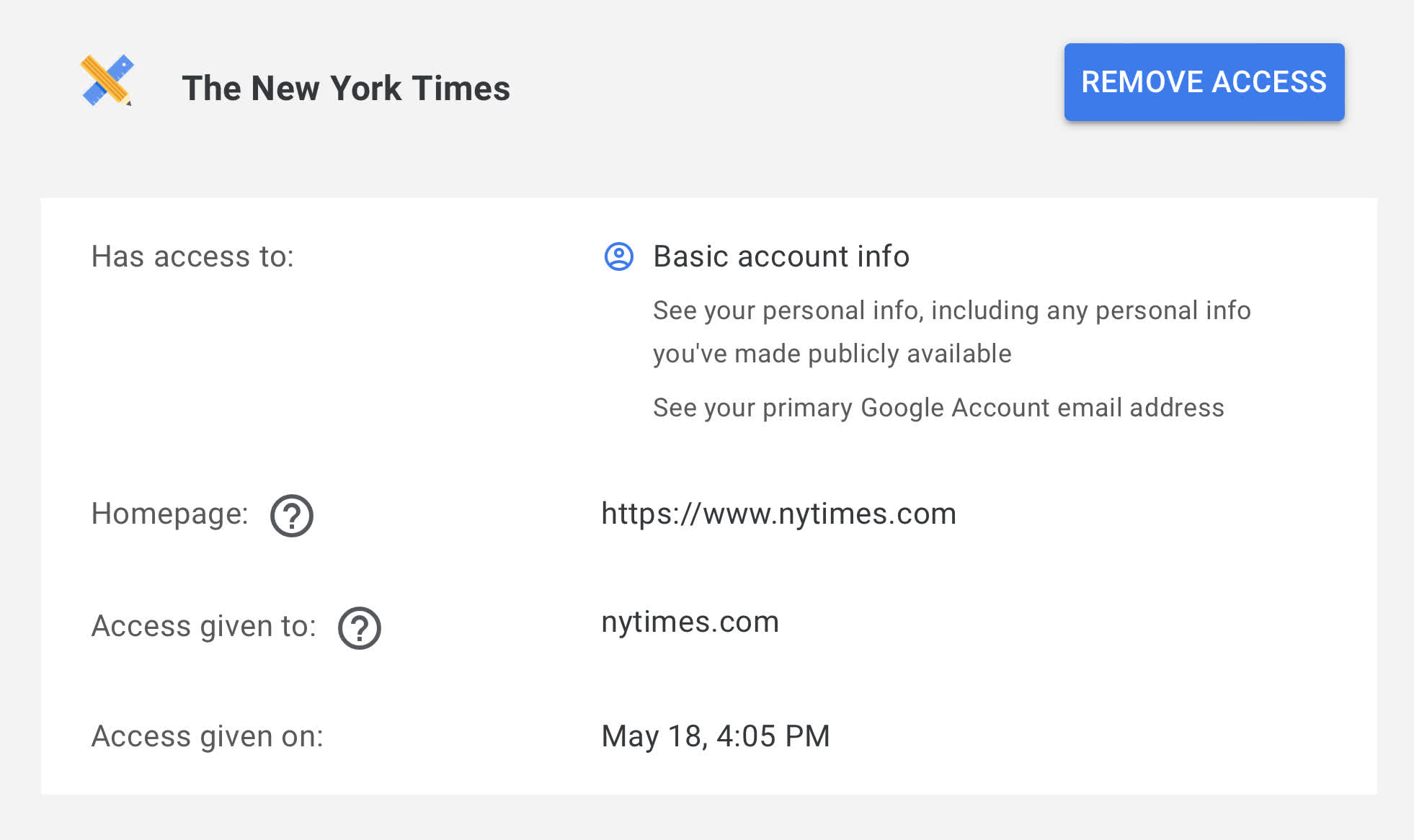 Alternatively, you can hit the "View and Edit" button to see the specific information the website can access and revoke permissions individually when allowed.