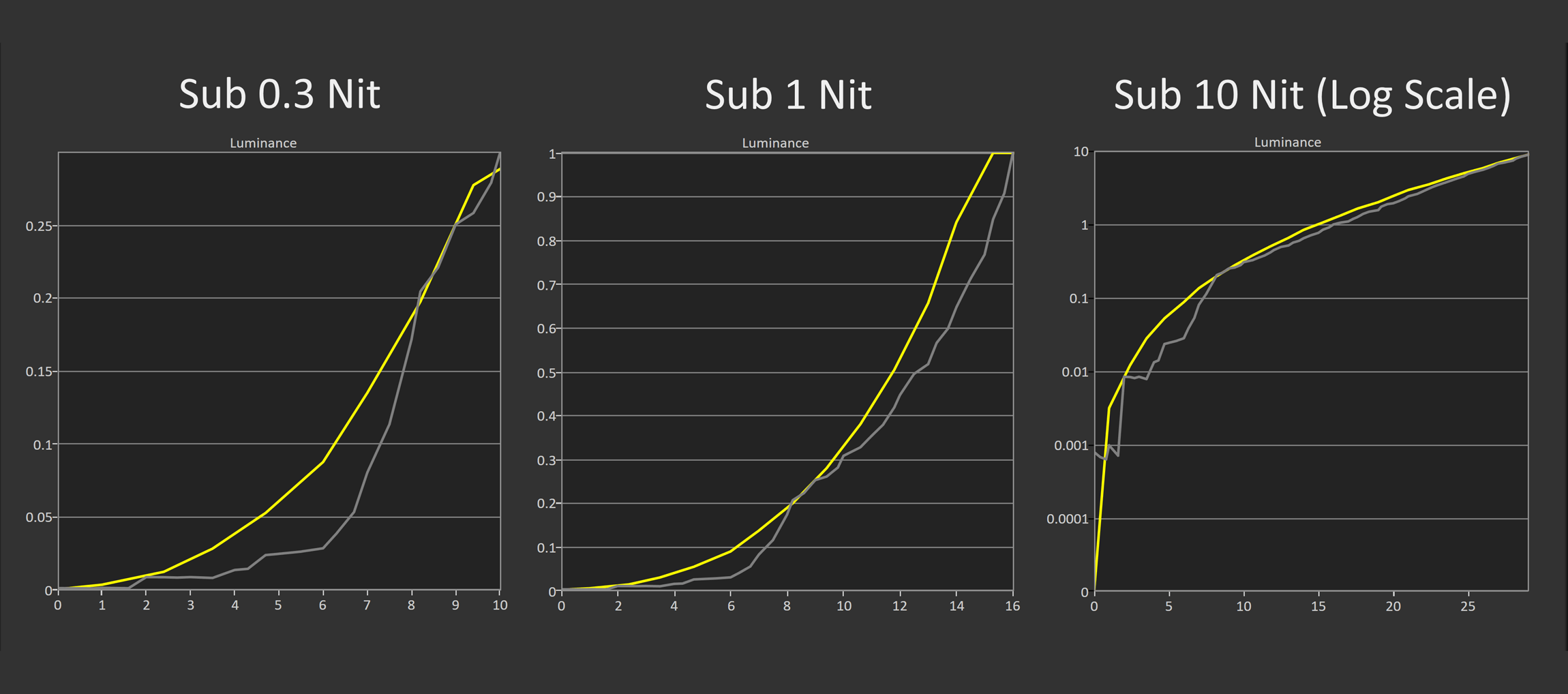 When viewing cumulative deviation results, we can see that OLEDs get much closer to ideal response time behavior, and in most cases, offer performance an order of magnitude better in this metric than LCDs. In practice, this leads to around a 1.5x advantage in clarity at a given refresh rate, so 240Hz OLEDs like the UCDP offer a similar experience to 360Hz LCDs. The only displays with clearly superior clarity are LCDs that offer elite backlight strobing, a feature that comes with its own set of limitations, like incompatibility with variable refresh rates.