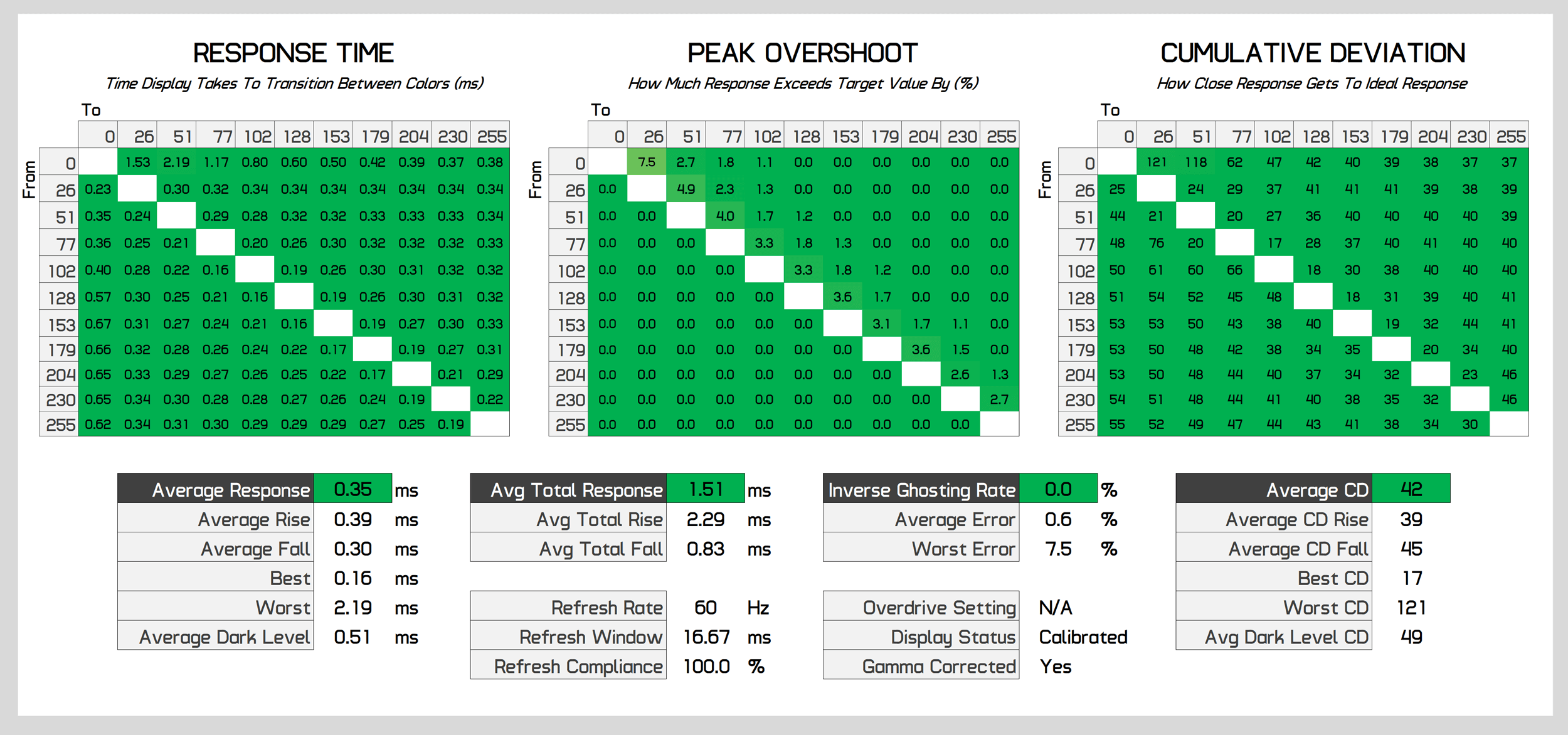 It's also good to confirm excellent cumulative deviation results, though no different from most other OLEDs. As expected this really is the same panel that delivers the same motion performance as other QD-OLED ultrawides.